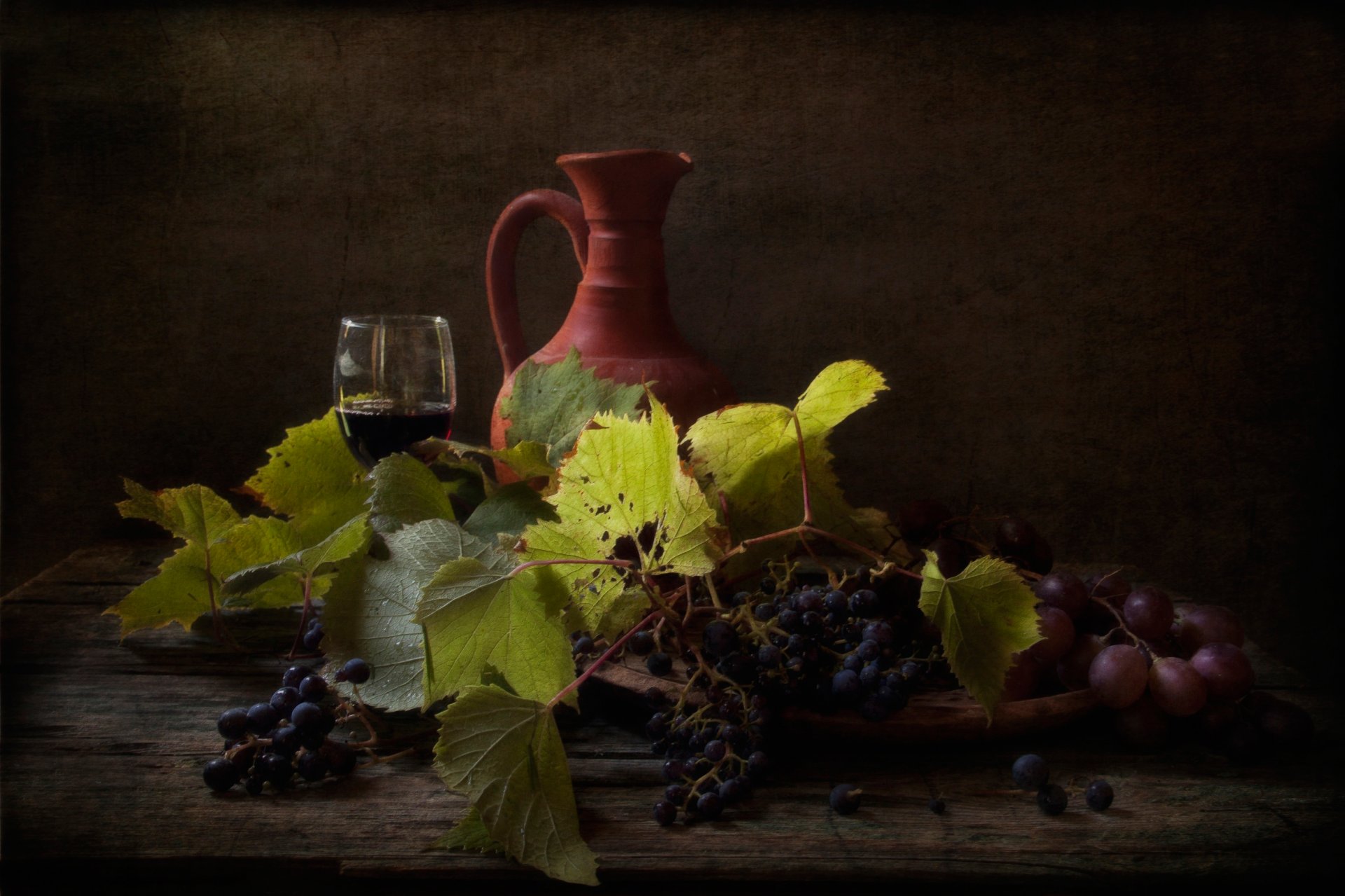 Nature morte dans la nature avec des poires de pommes et de raisinsNature morte dans la nature avec des poires de pommes et de raisins