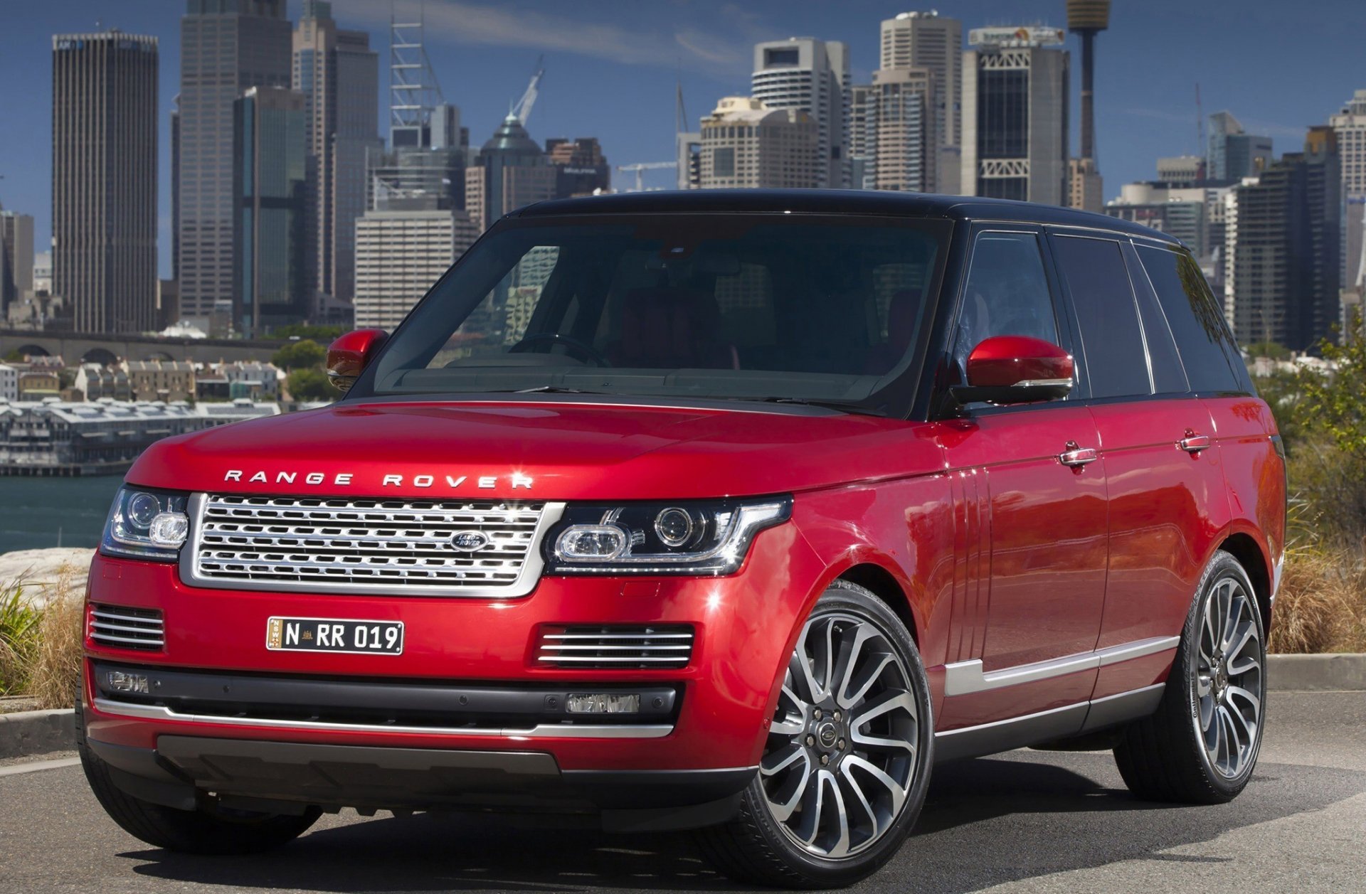 Range rover bleu vif sur fond de nuages gris rassemblés