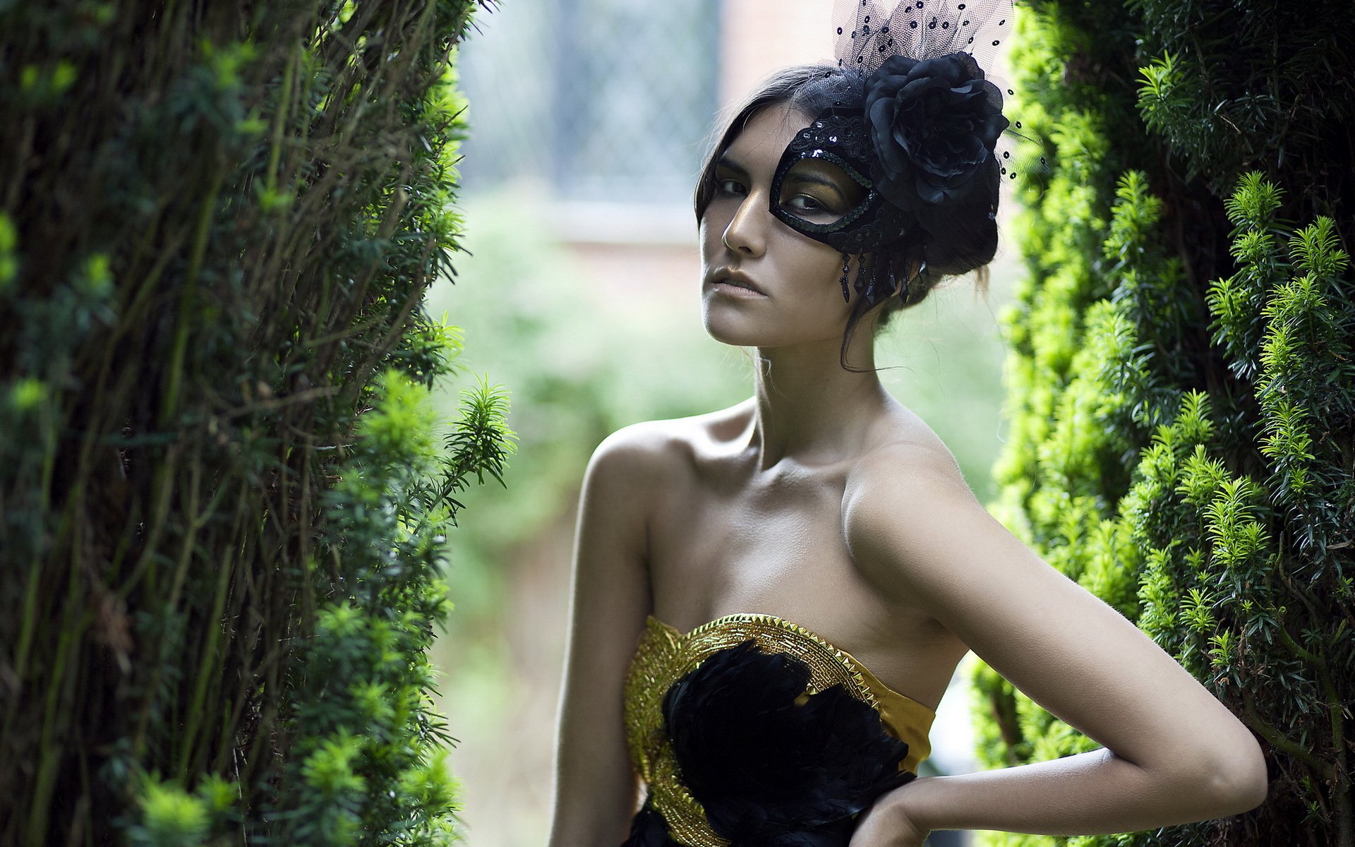 Fille dans un masque noir dans la nature