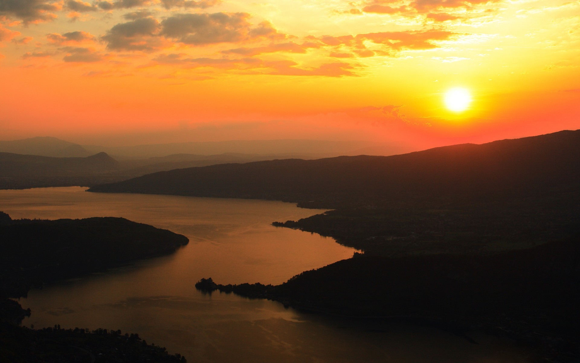 Rivière dans les rayons du soleil couchant nuages sur fond de coucher de soleilRivière dans les rayons du soleil couchant nuages sur fond de coucher de soleil