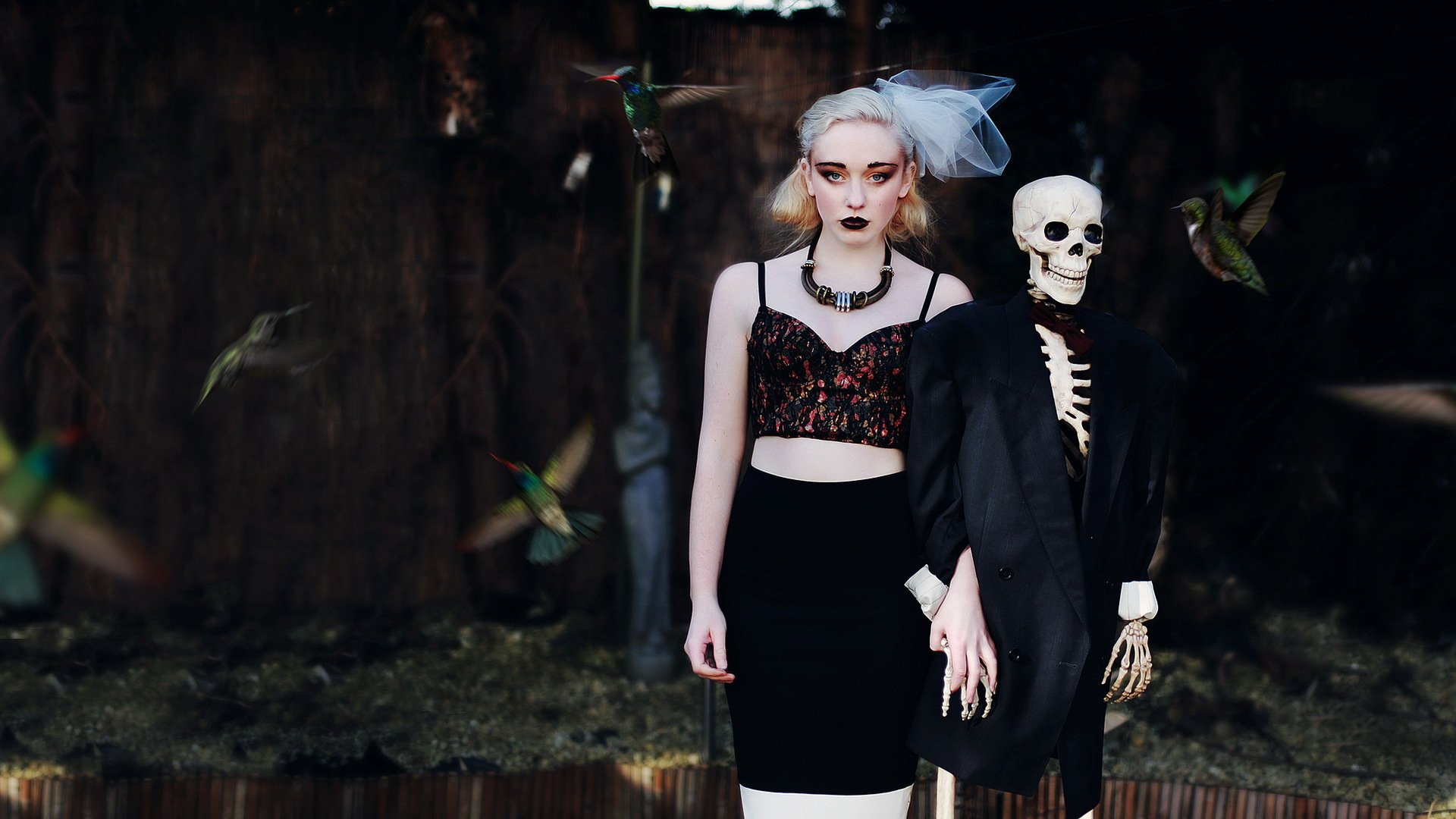 Fille de fantaisie avec des pétales blancs de la main au sommet de la fleur blanche laissant tomber les pétalesFille de fantaisie avec des pétales blancs de la main au sommet de la fleur blanche laissant tomber les pétales