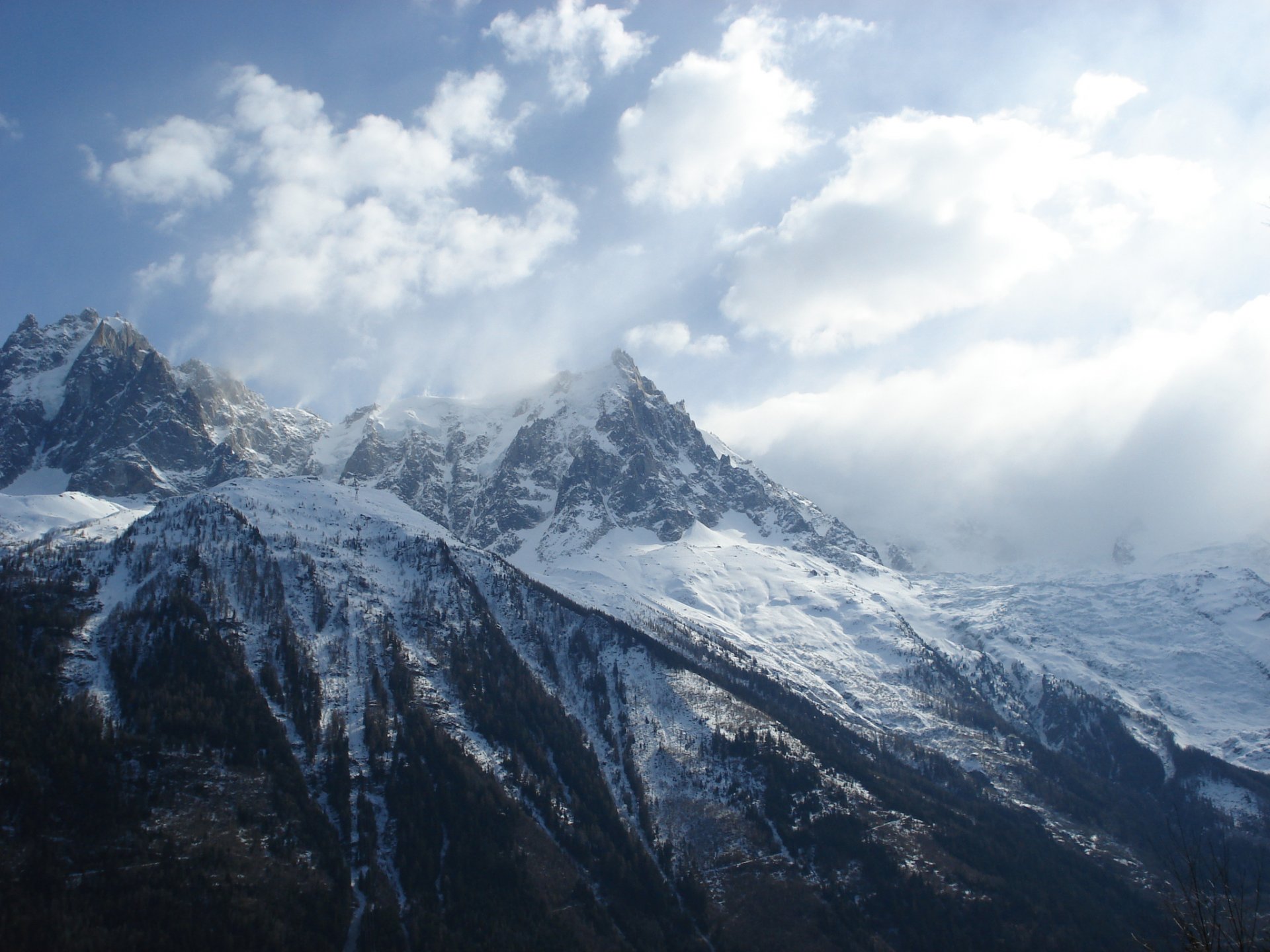 Un monde fantastique avec des montagnes et des nuagesUn monde fantastique avec des montagnes et des nuages
