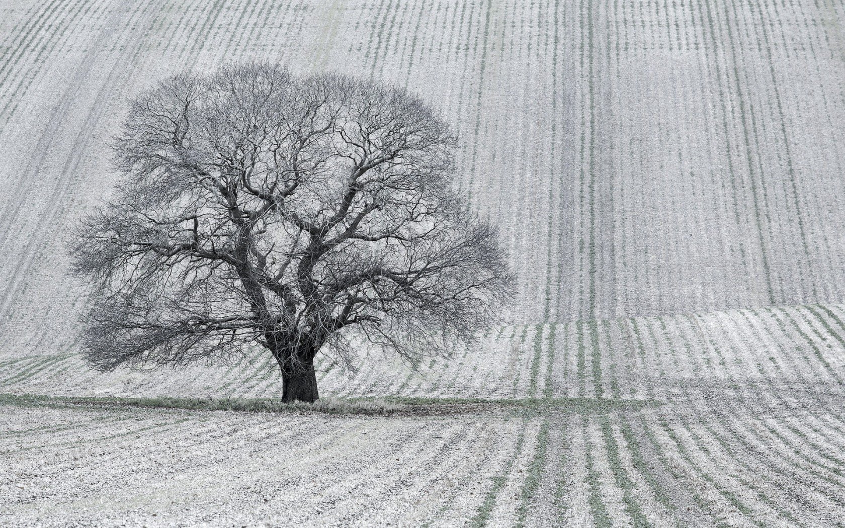 Arbre dans le champ ou paysage noir et blanc