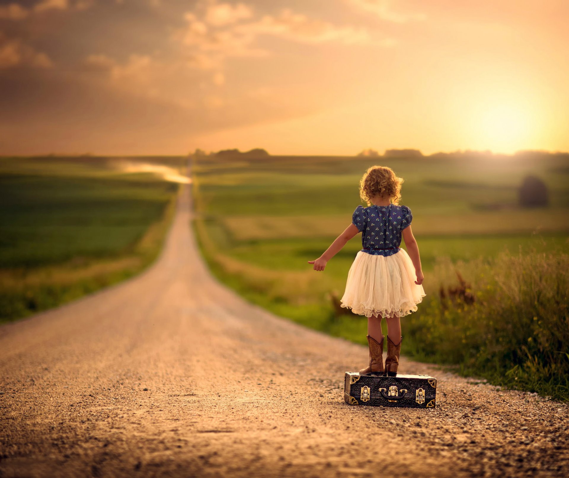 Une personne va sur la route avec un tas de valisesUne personne va sur la route avec un tas de valises