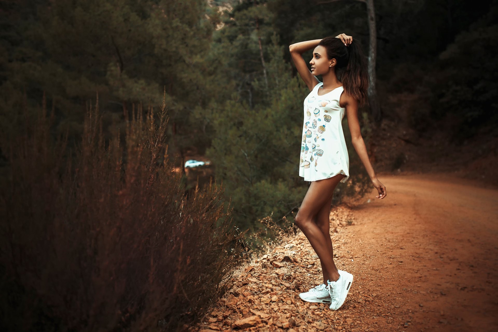 Jeune fille souriante se trouve dans les fourruresJeune fille souriante se trouve dans les fourrures