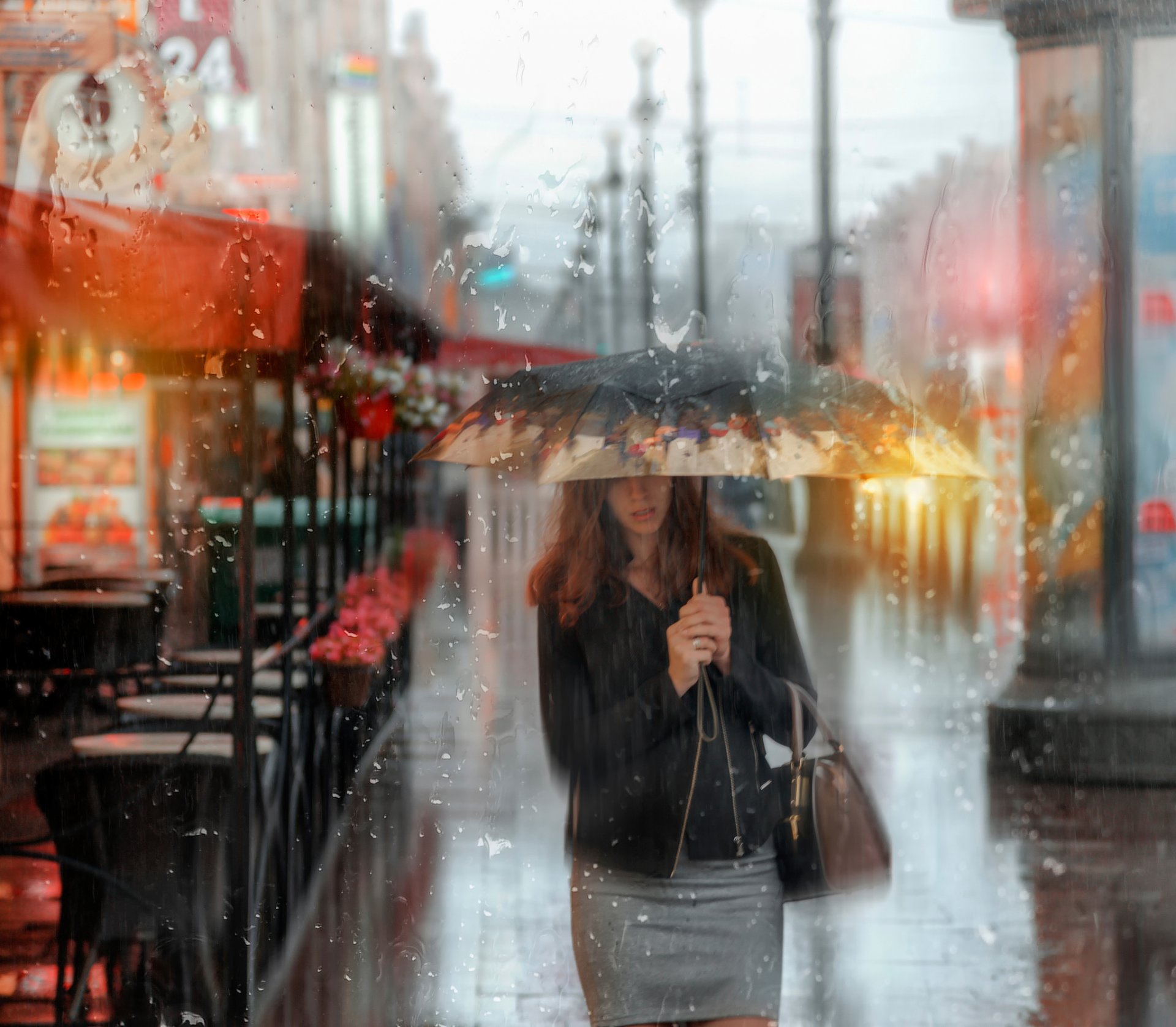 Fille sous le parapluie sous la pluie d'été à saint-pétersbourgFille sous le parapluie sous la pluie d'été à Saint-Pétersbourg