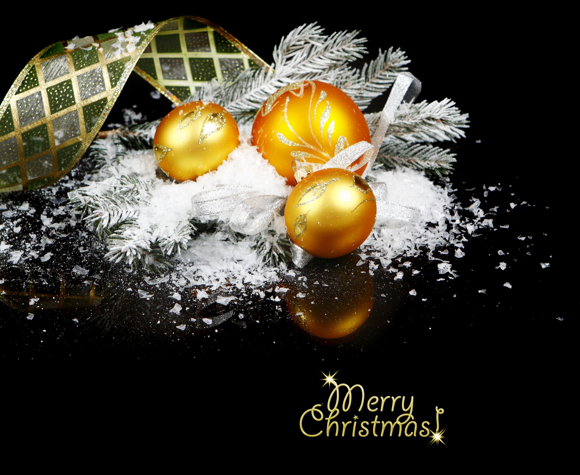 Salutations de noël avec des boules de noël et une branche d'épinetteSalutations de Noël avec des boules de Noël et une branche d'épinette