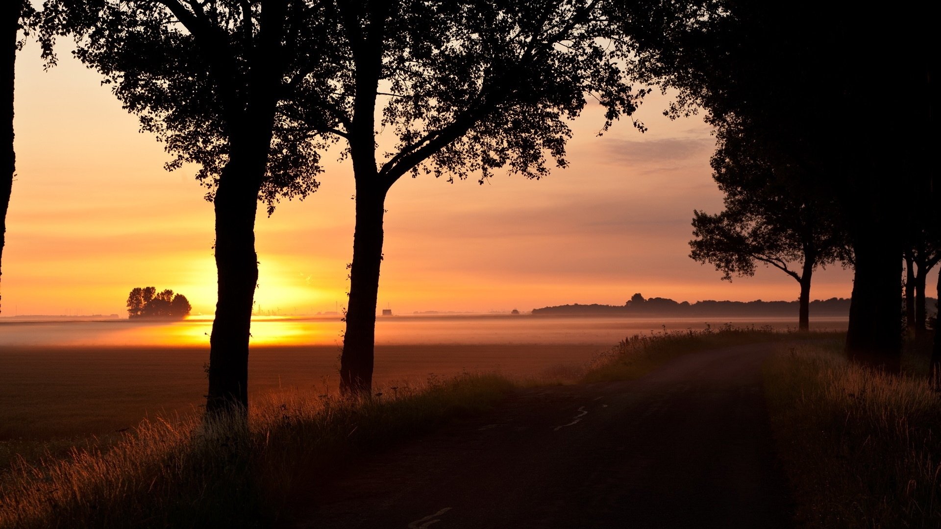 Coucher de soleil du soir dans le champ et la lune dans le ciel