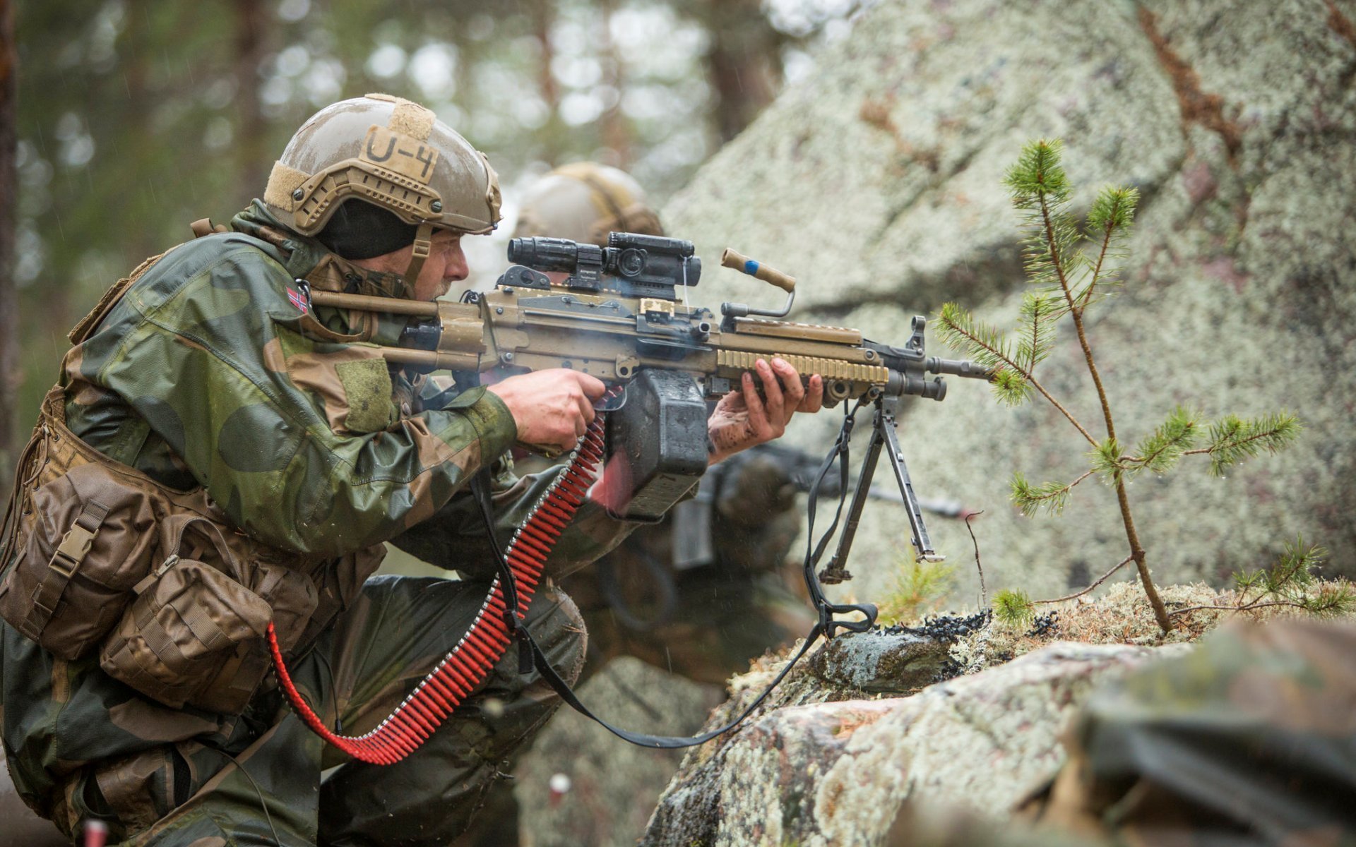 Des soldats déguisés avec une arme à feu cherchent la cibleDes soldats déguisés avec une arme à feu cherchent la cible