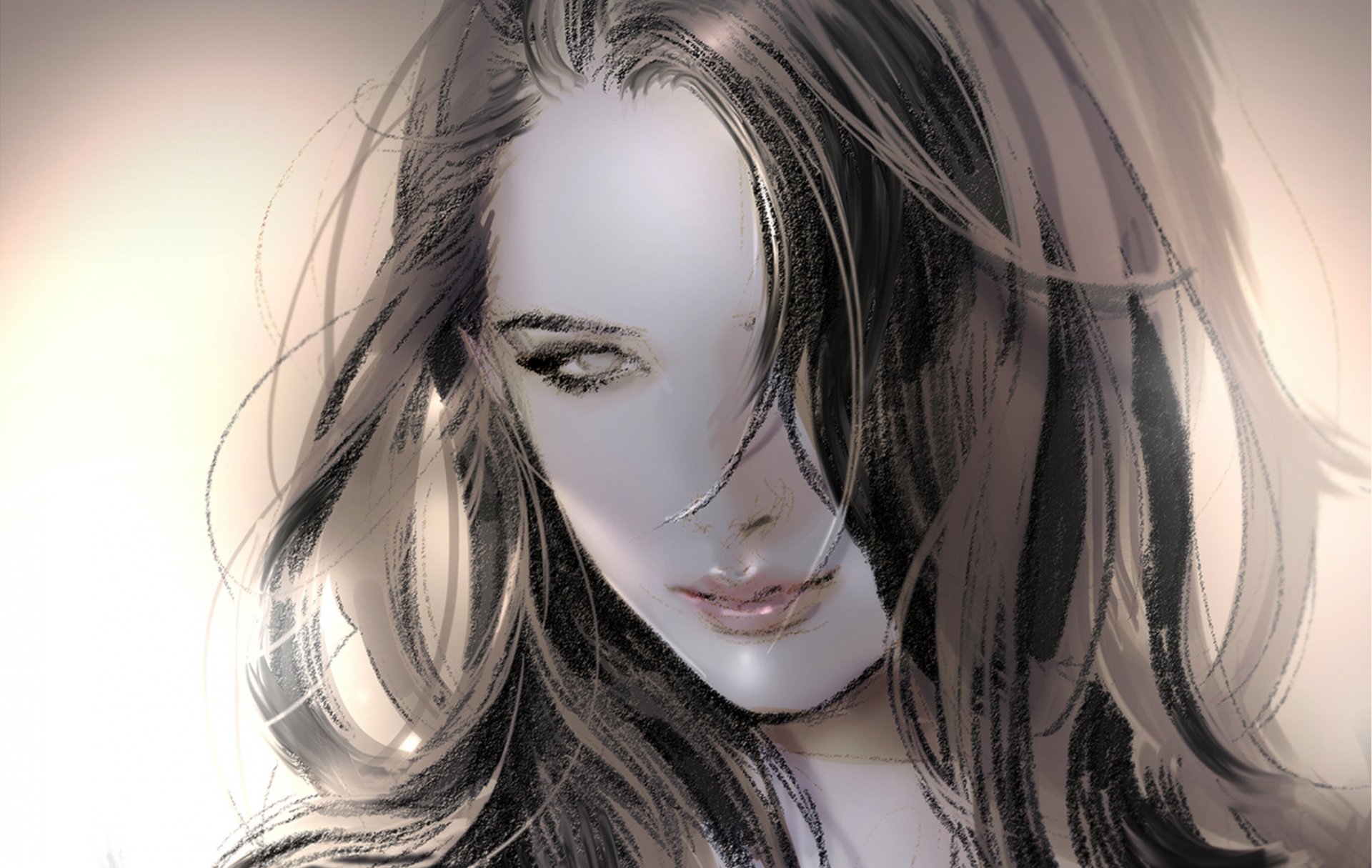 Dessin d'une jeune fille souriante sur fond de grandes fleursDessin d'une jeune fille souriante sur fond de grandes fleurs