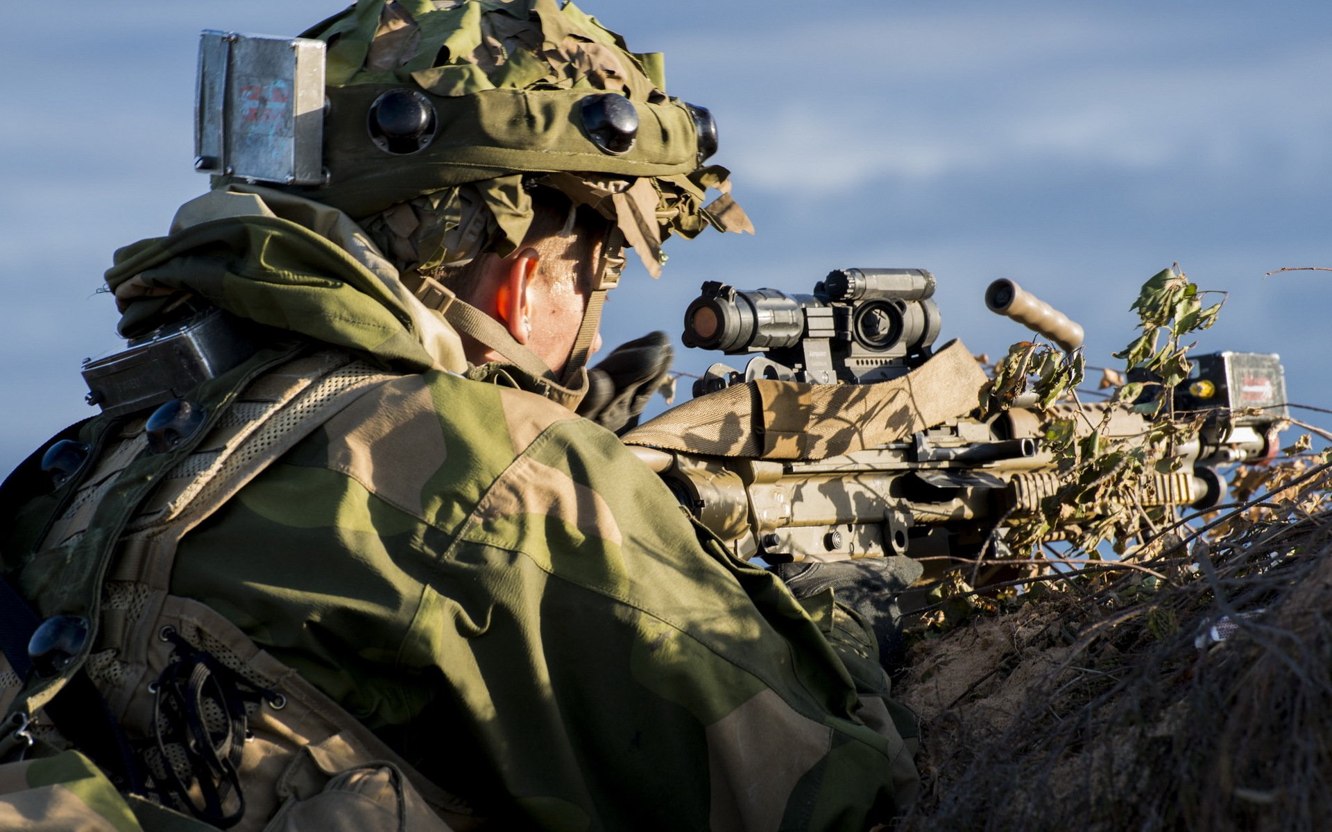 Soldat regardant dans le viseur optique d'un fusil