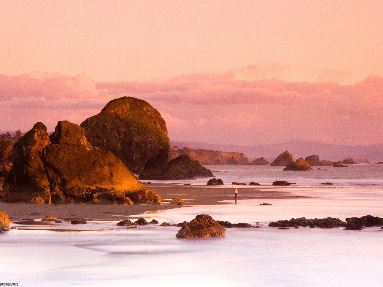 Blonde sur la plage sous le ciel coucher de soleilBlonde sur la plage sous le ciel coucher de soleil