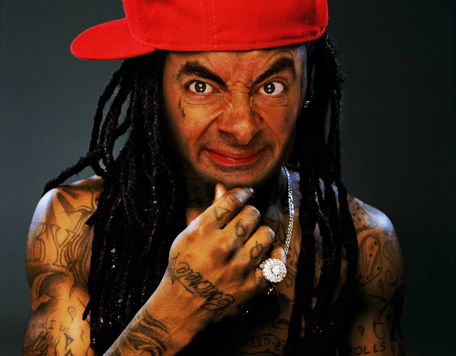 Un homme avec un chapeau et des tatouages barbouillé de mousse longue barbeUn homme avec un chapeau et des tatouages barbouillé de mousse longue barbe