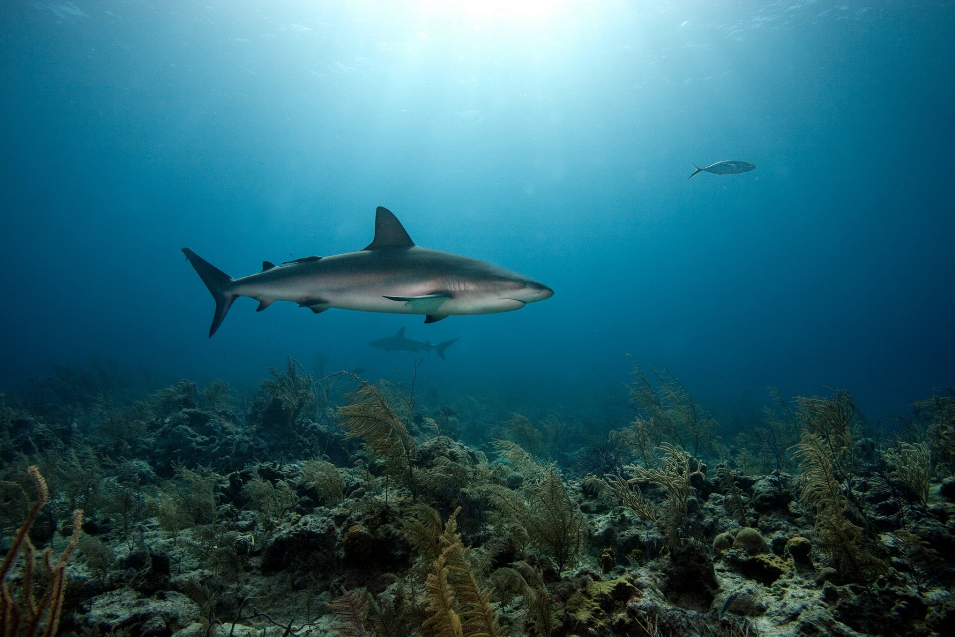 Dauphin de maman et fils dauphin flottant sur fond bleu