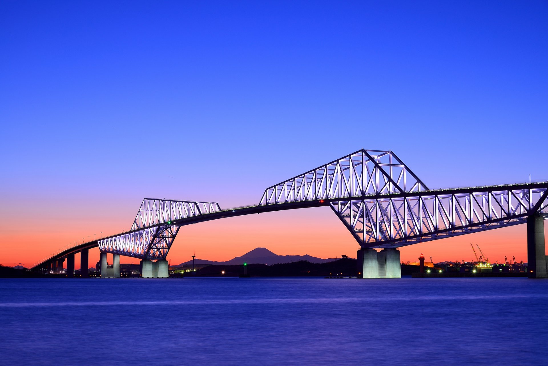 Pont avec rétro-éclairage sur fond de coucher de soleil