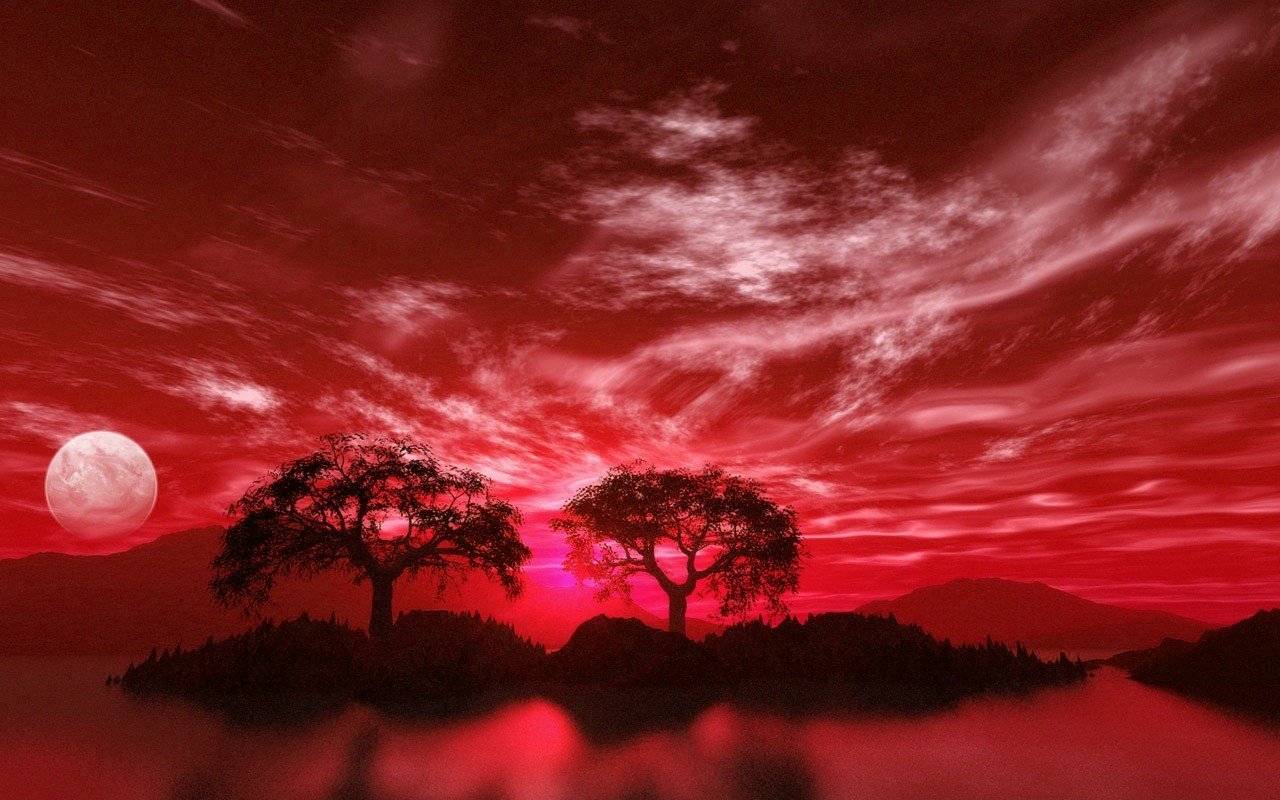 Planètes sur fond de montagnes et de l'eau dans les tons bleusPlanètes sur fond de montagnes et de l'eau dans les tons bleus