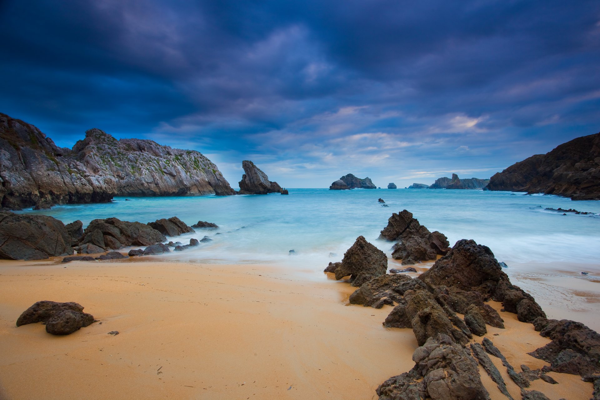 Coucher de soleil sur la plage de sable de l'océanCoucher de soleil sur la plage de sable de l'océan