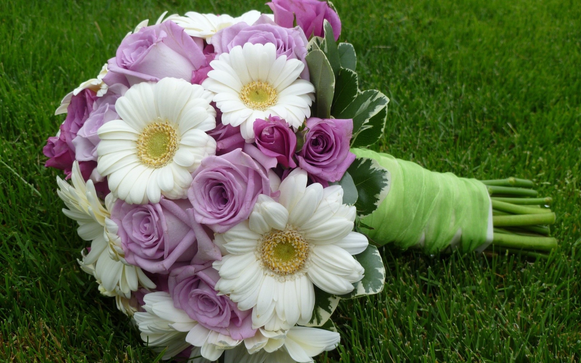 Bouquet de mariage avec des marguerites et des rosesBouquet de mariage avec des marguerites et des roses