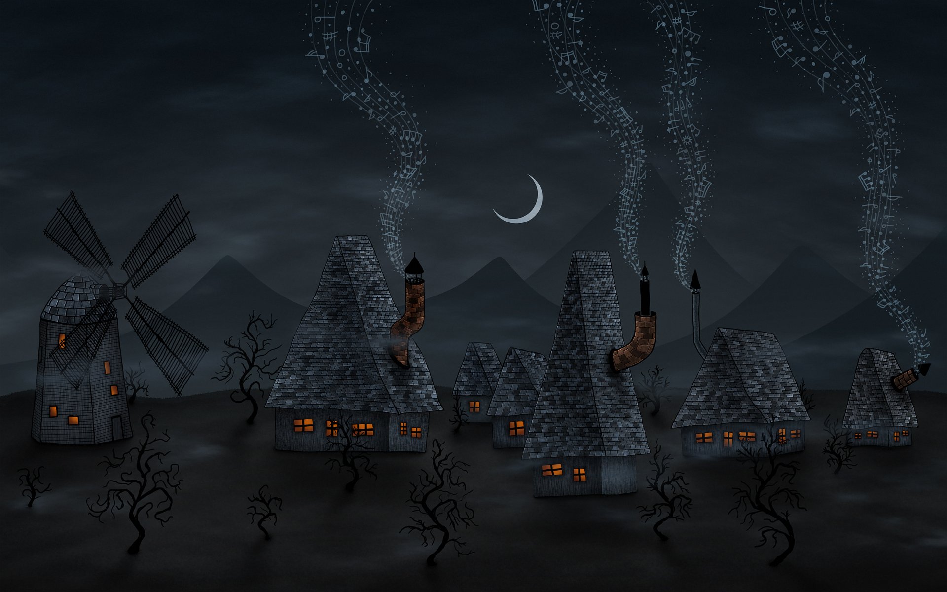 Moulin à vent en fond noir et blanc