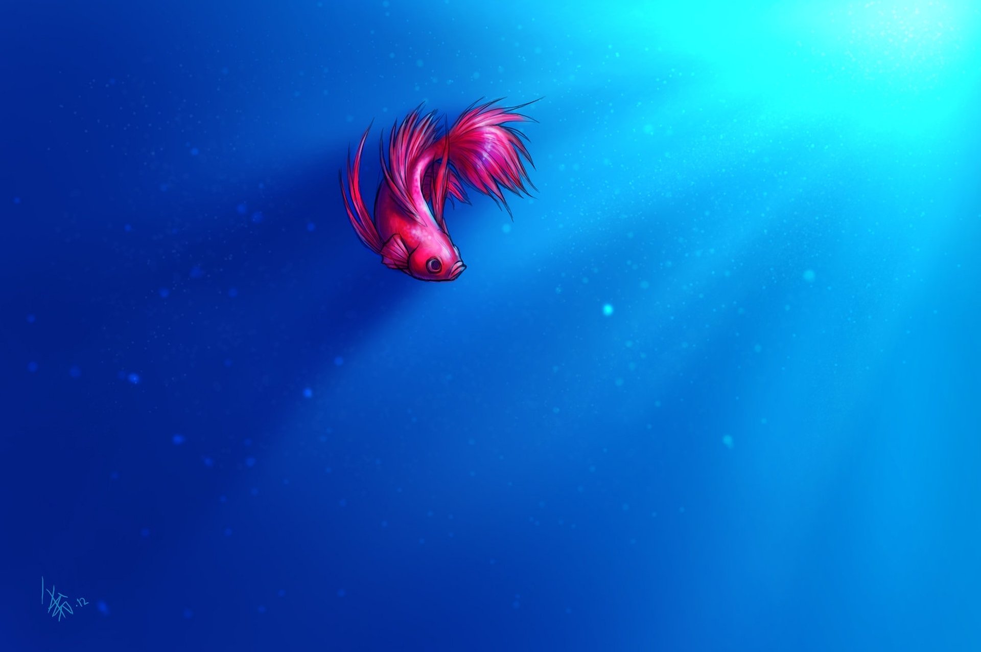 Title sous l'eau méduse avec un poisson dans le thème bleu