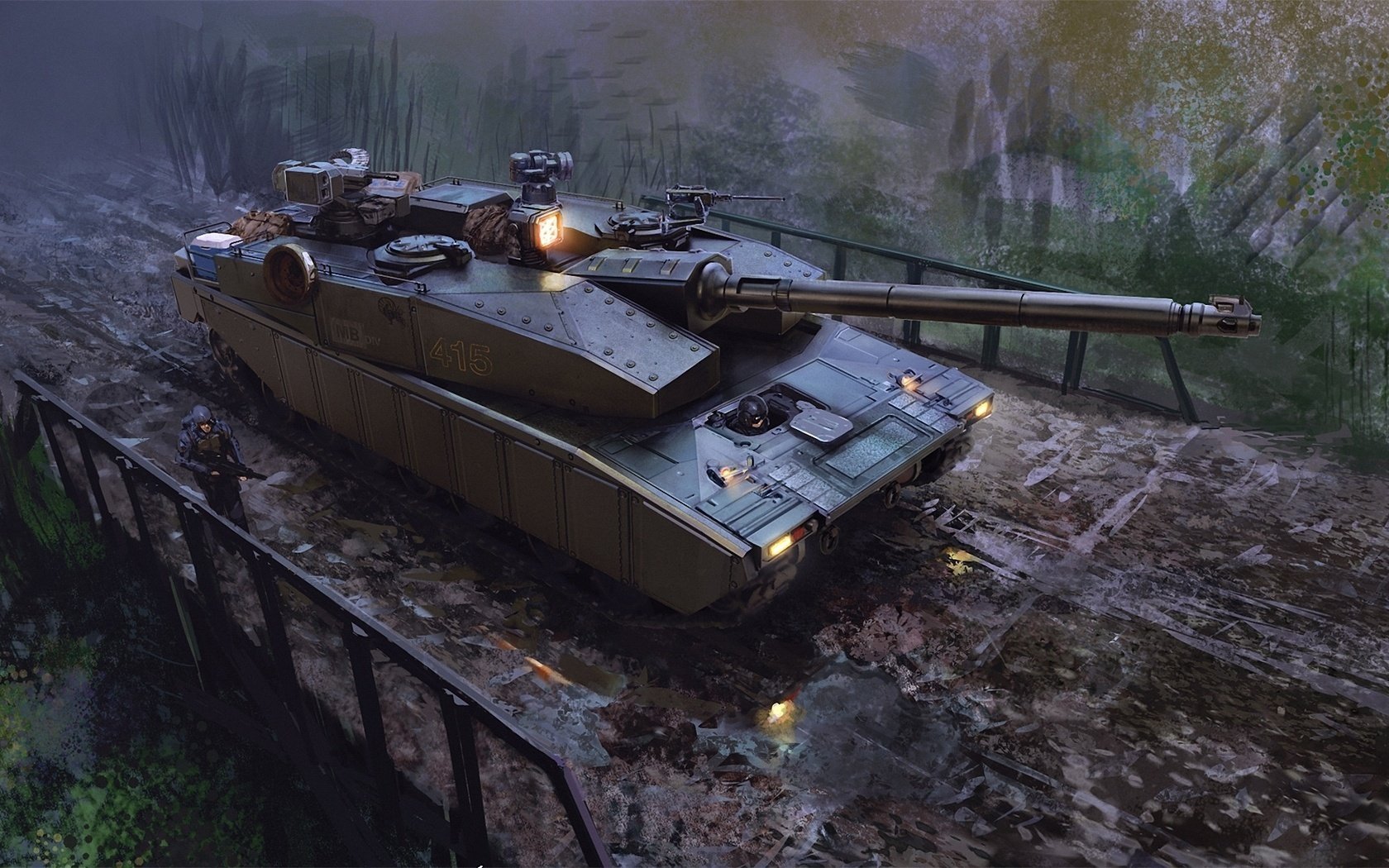 Un char militaire Monte sur un pont