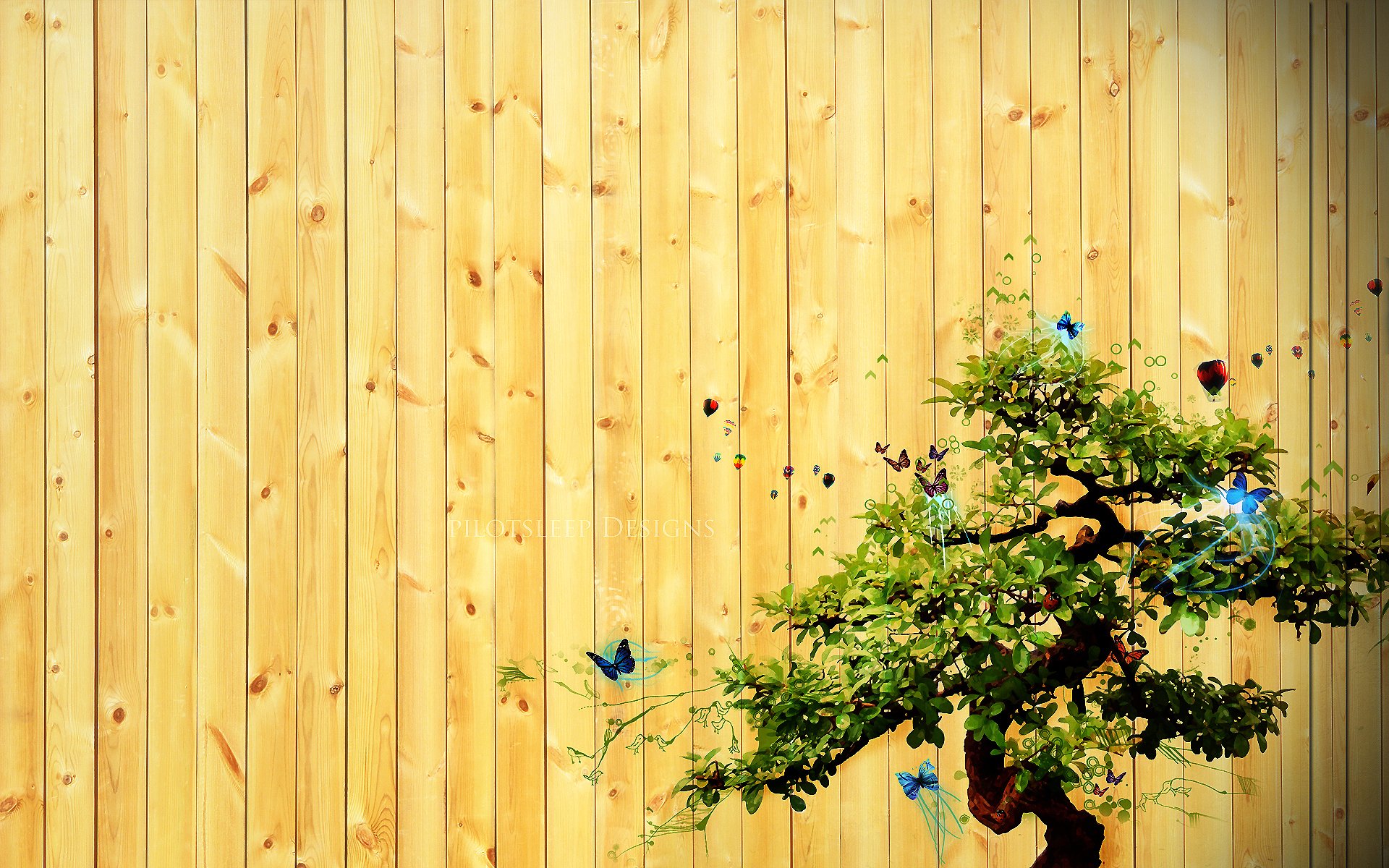 Image d'un arbre ramifié avec des papillons sur une clôture