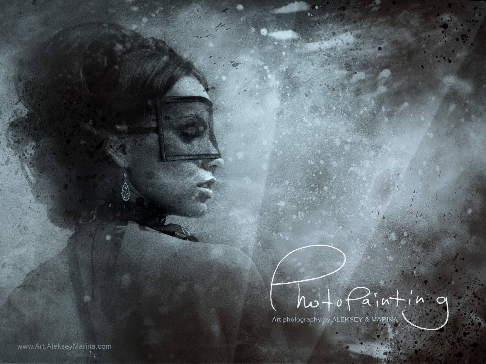 Image surréaliste noir et blanc d'une fille en robe longueImage surréaliste noir et blanc d'une fille en robe longue