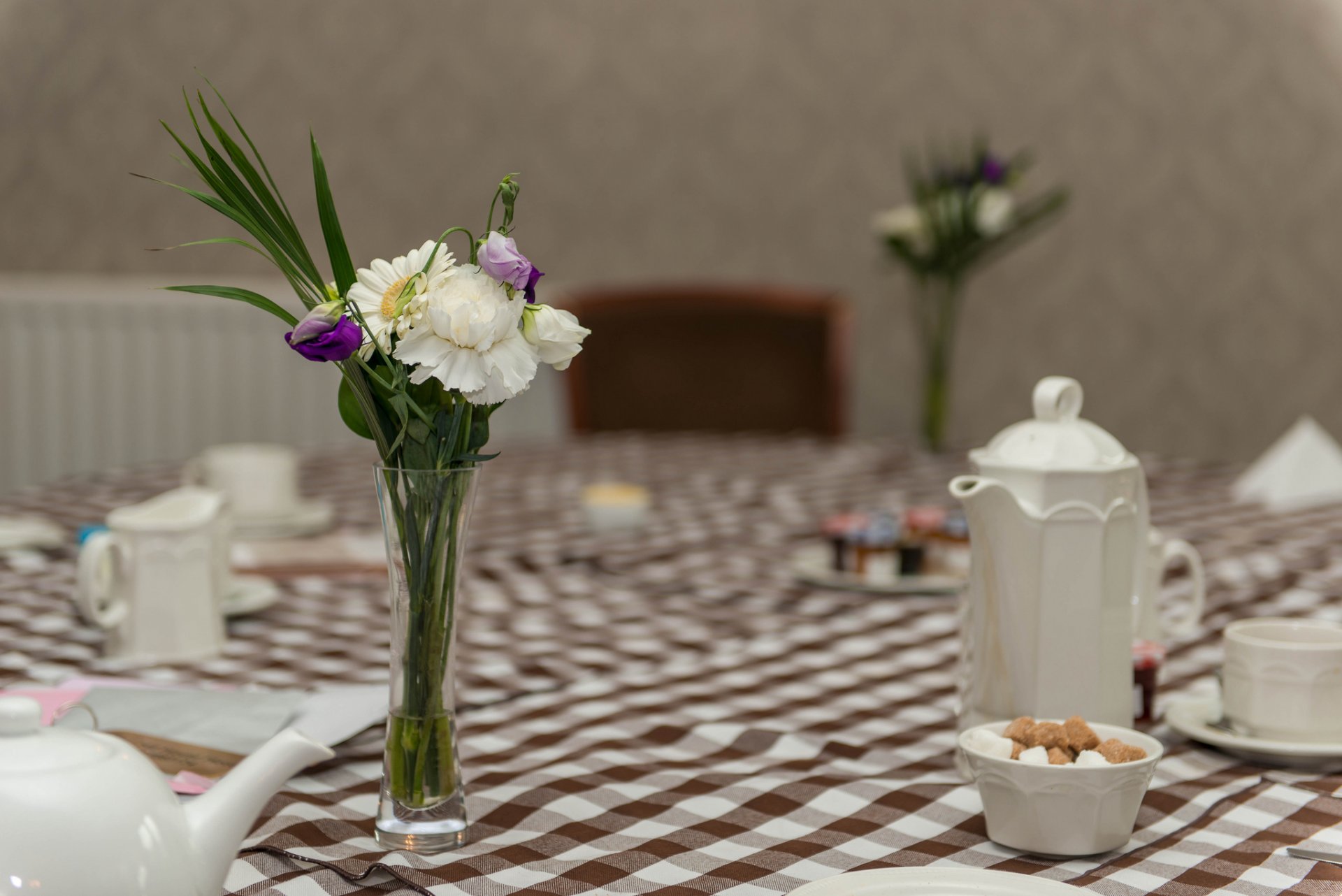 Dessin d'un parapluie en face d'un café avec des fleurs dans des vasesDessin d'un parapluie en face d'un café avec des fleurs dans des vases
