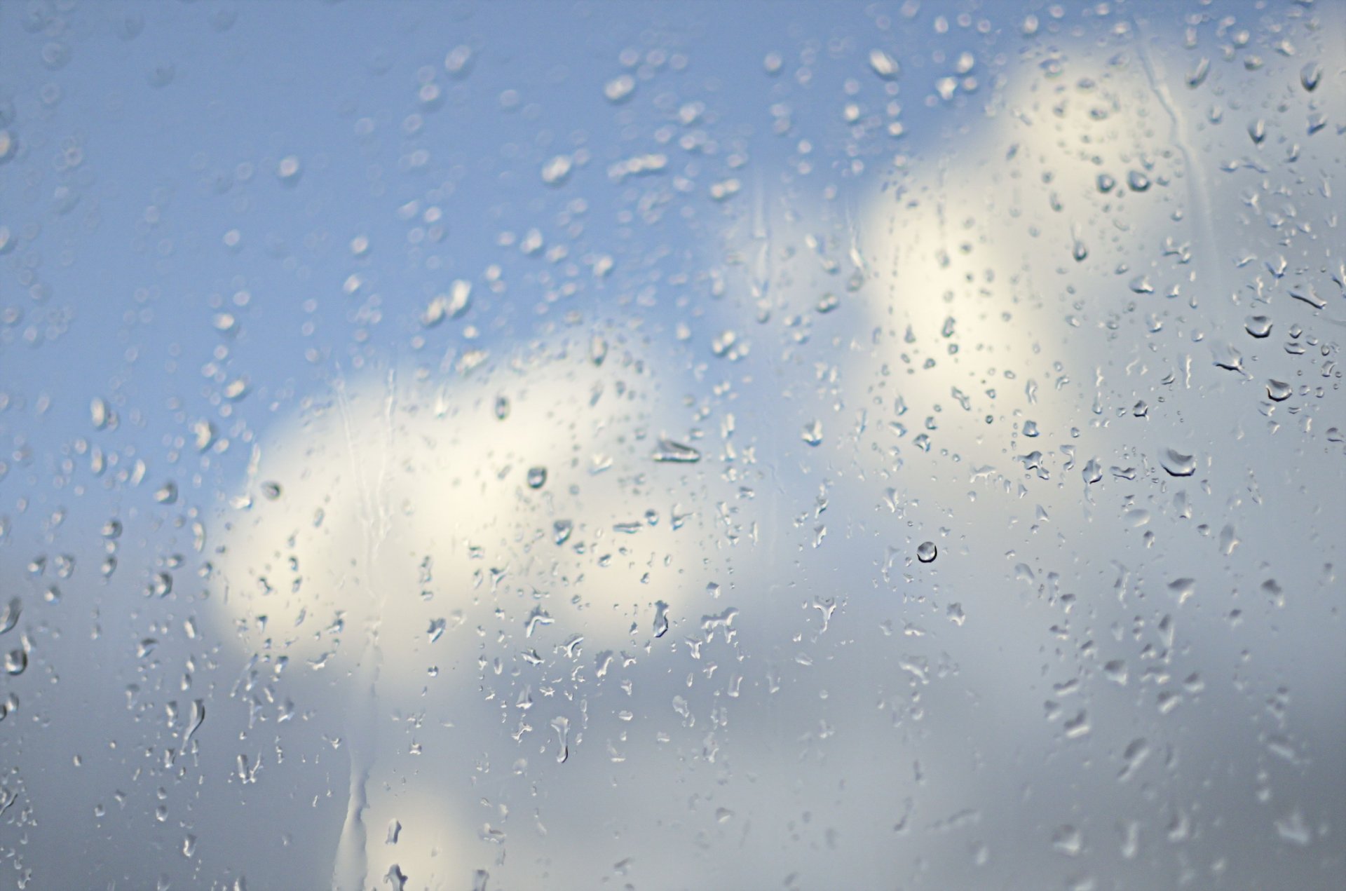 Gouttes après la pluie sur le verre sur le fond de la lumière des phares