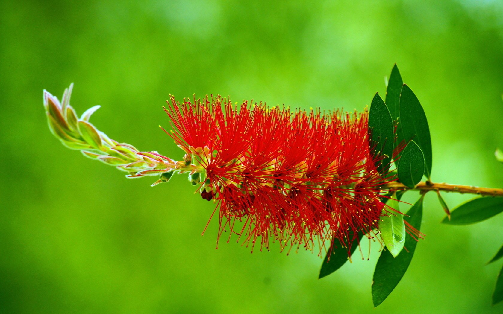 Branche dans le vert vif des feuilles sur fond bleu ciel