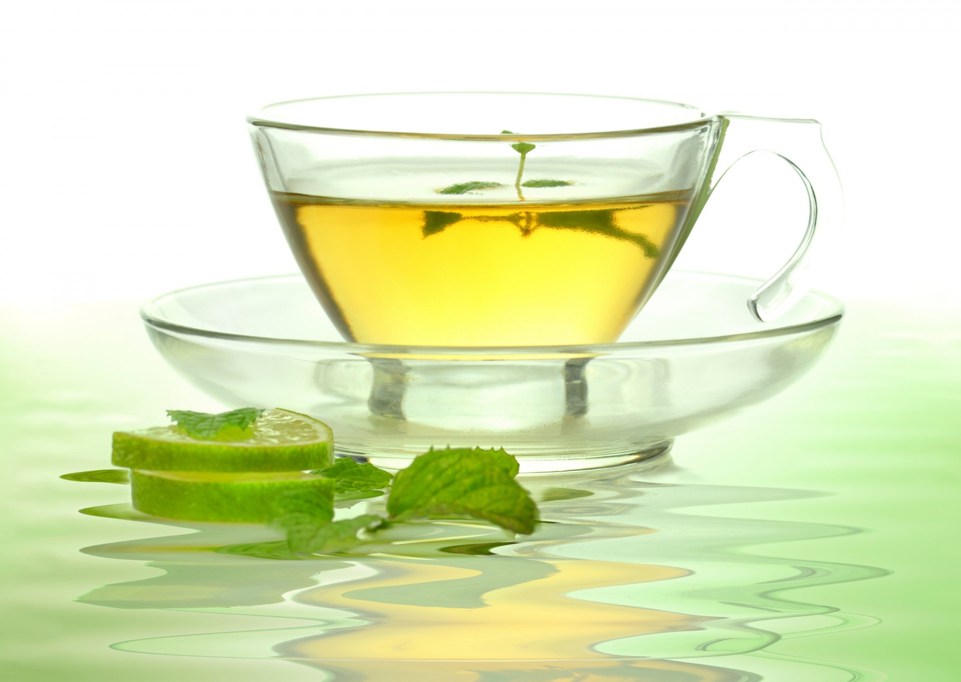 Un verre rempli d'eau, avec du citron et de la menthe, debout sur la glace