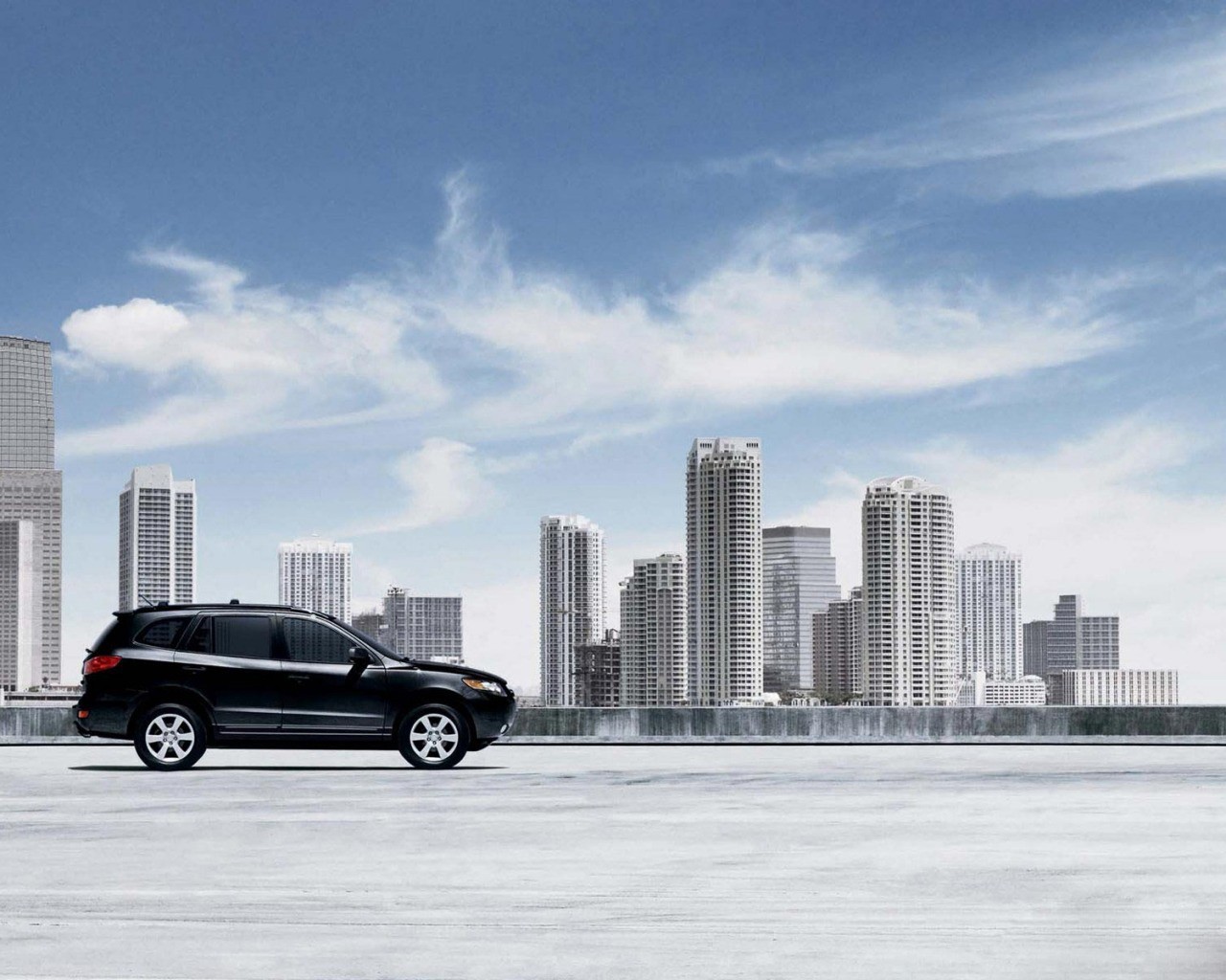 Voiture noire sur le paysage urbain