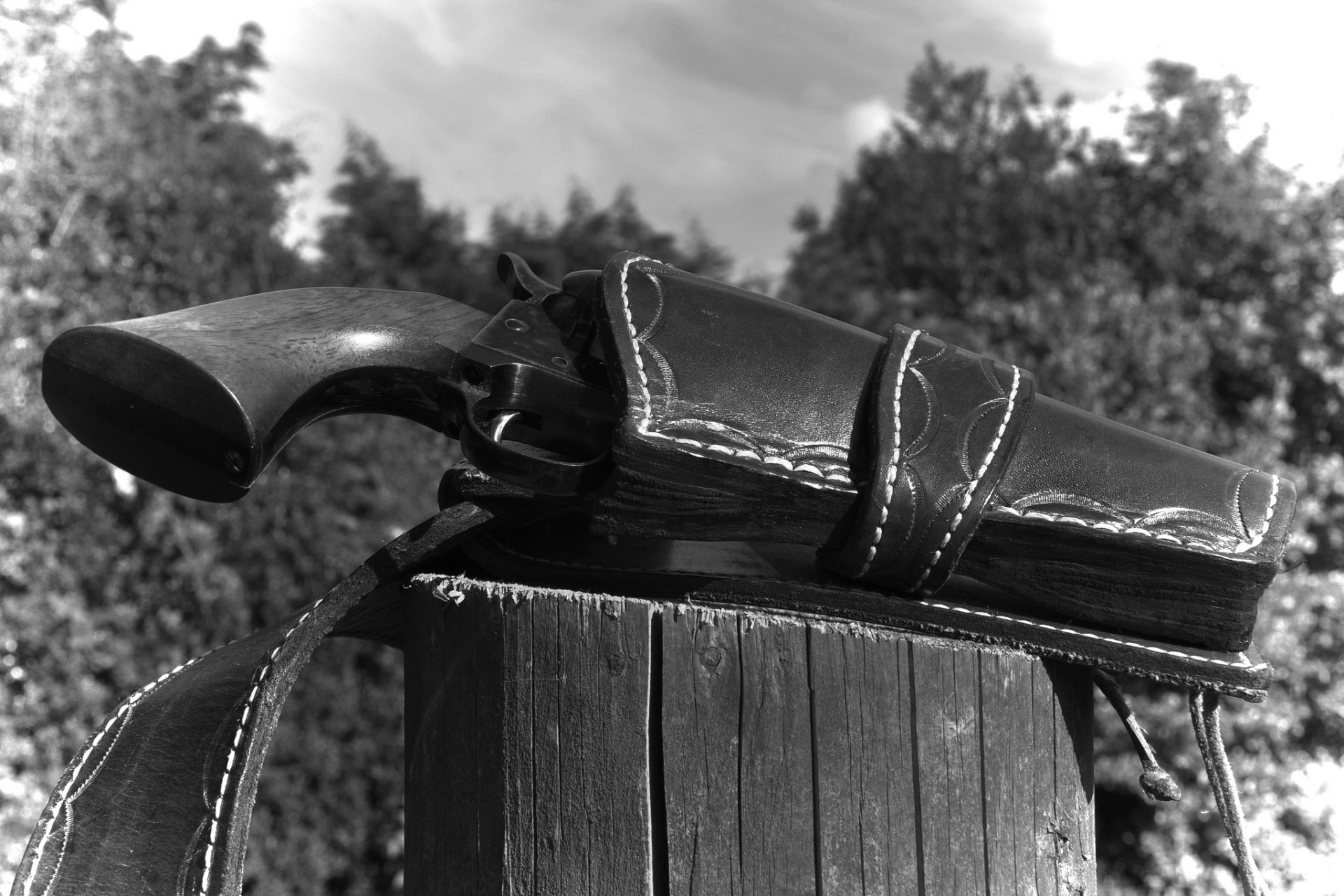 Vieux revolver dans un étui