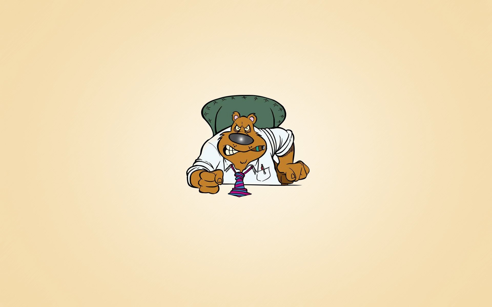Méchant ours patron avec cigare coups de poing assis sur une chaiseMéchant ours patron avec cigare coups de poing assis sur une chaise