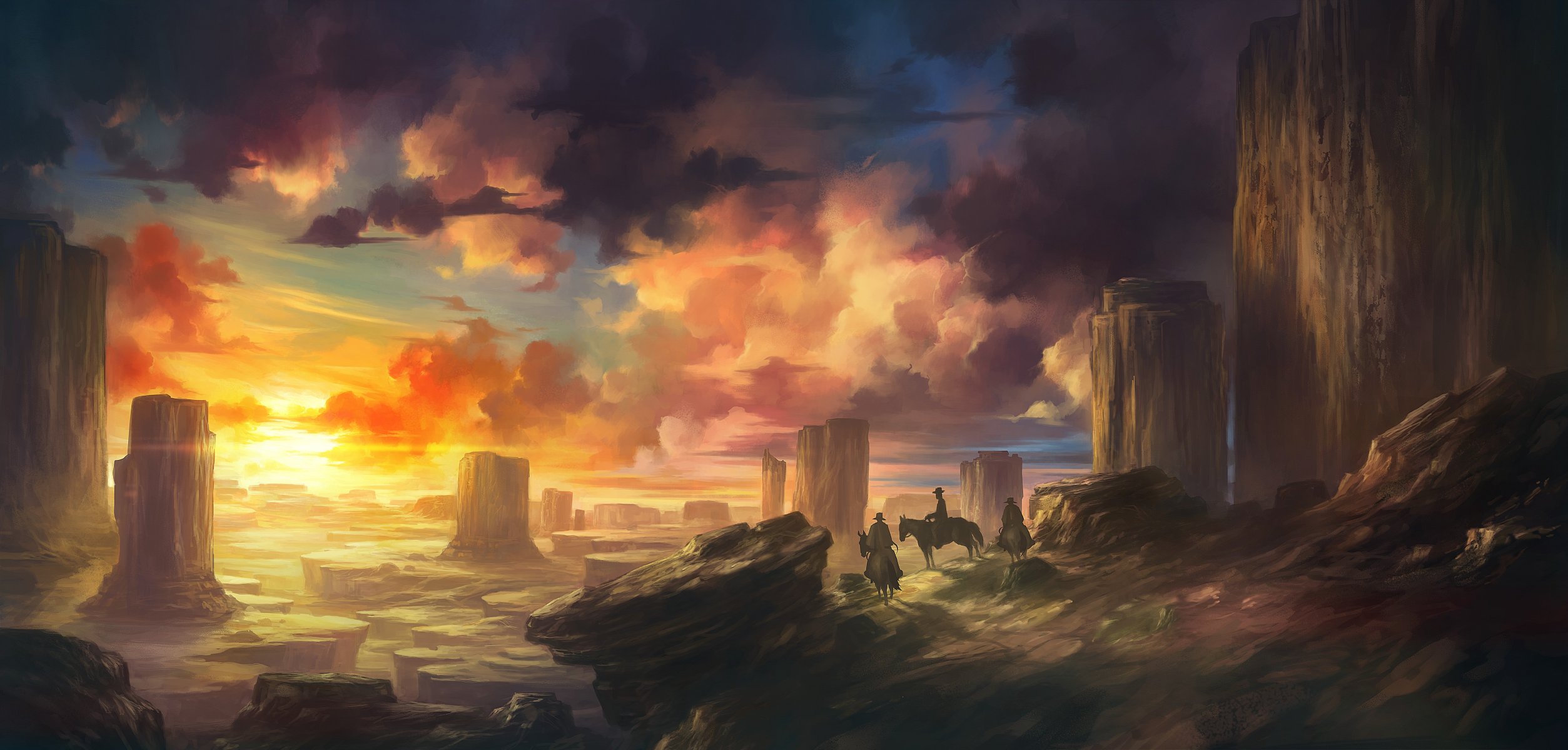 Paysage pittoresque avec des cow-boys et des nuagesPaysage pittoresque avec des cow-Boys et des nuages