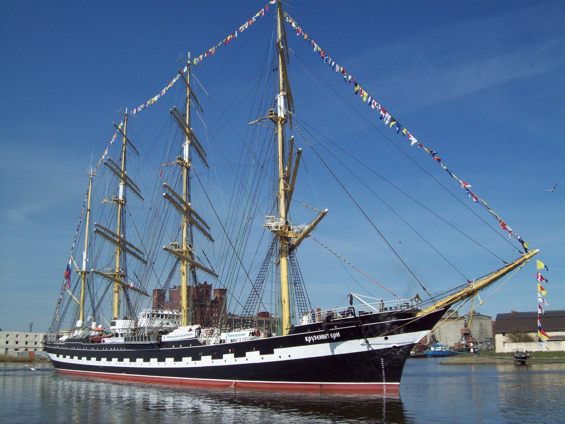 Le navire est un art. Très beau à l'horizon du ciel gris et de la surface spacieuse de l'océan
