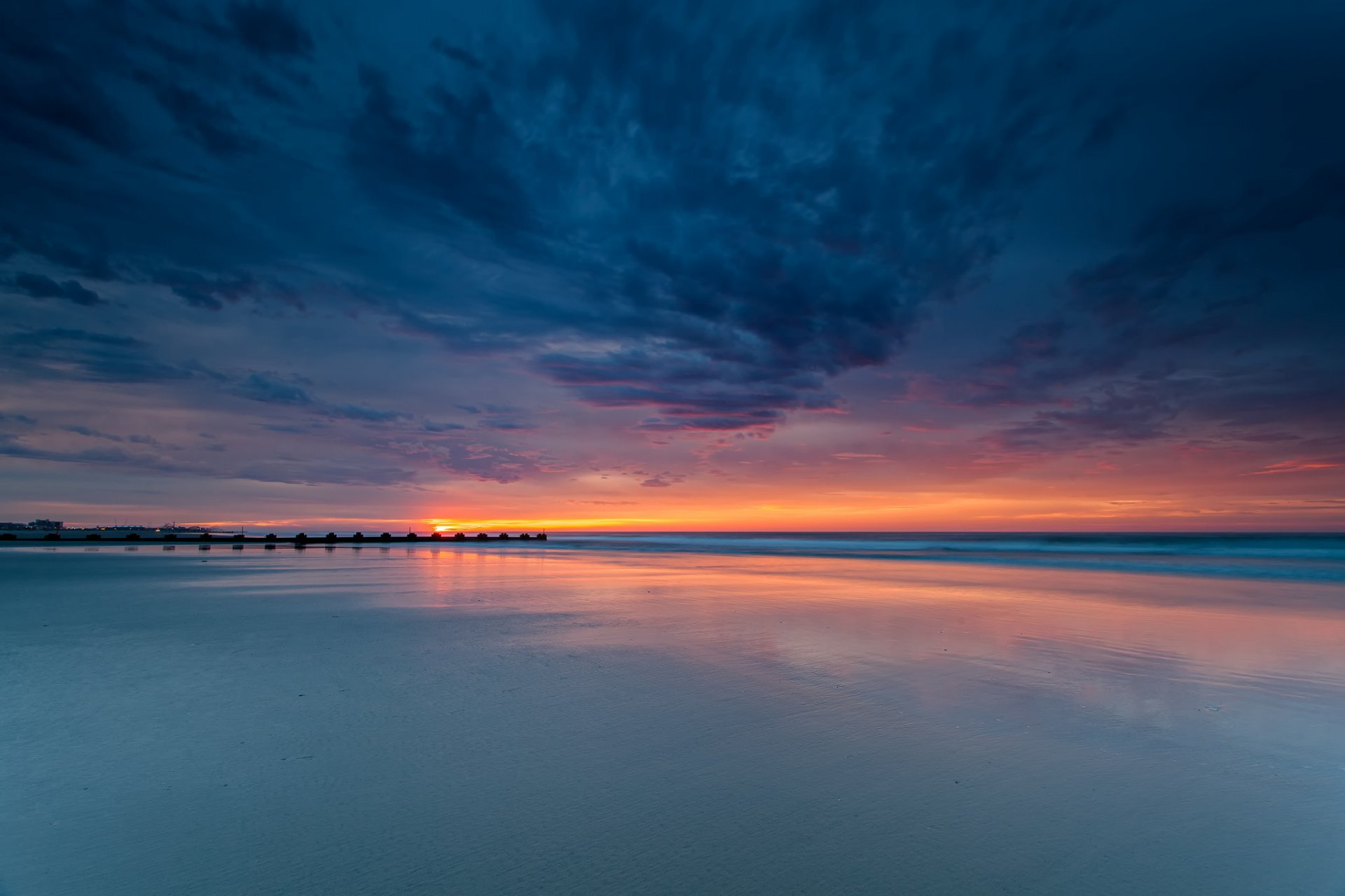 Soir, coucher de soleil au bord de la mer sur la côte rocheuse