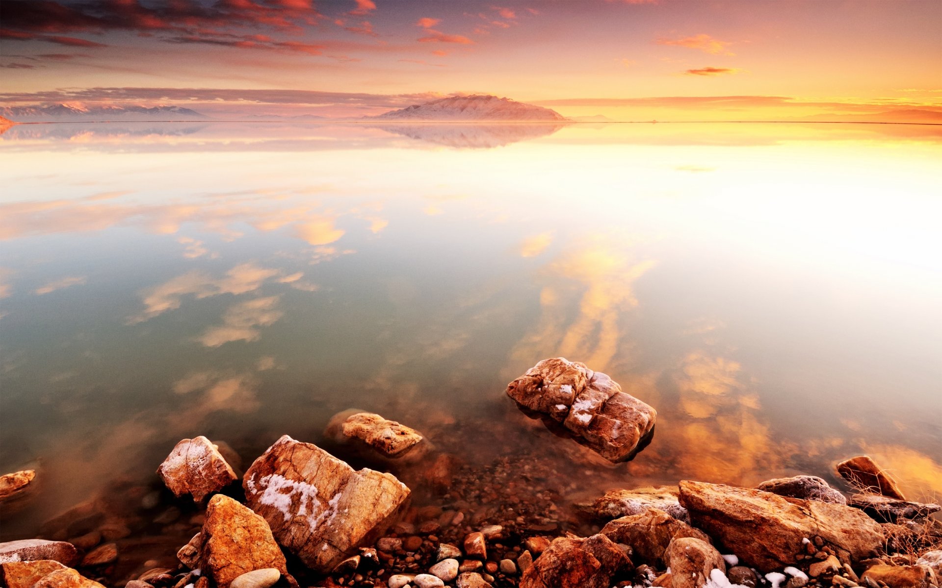 Coucher de soleil lumineux sur la mer d'ituman sur les rochers