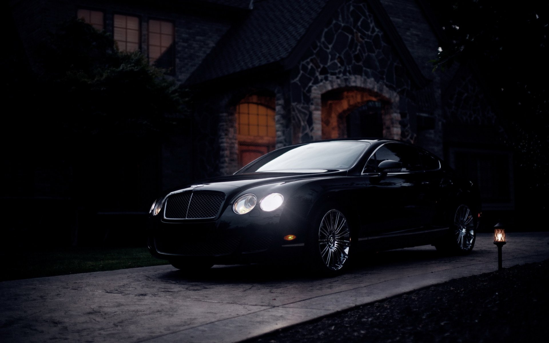 Voiture sur le dos au coucher du soleil, Bentley Continetal dans la soirée