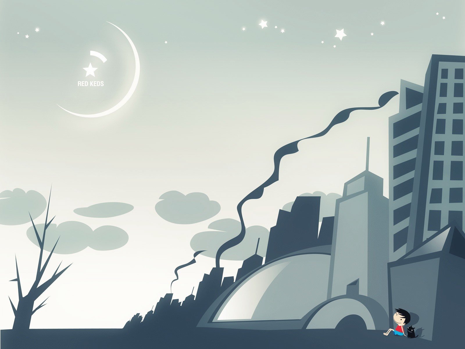 Dessin vectoriel d'un garçon avec un chat noir dans la ville