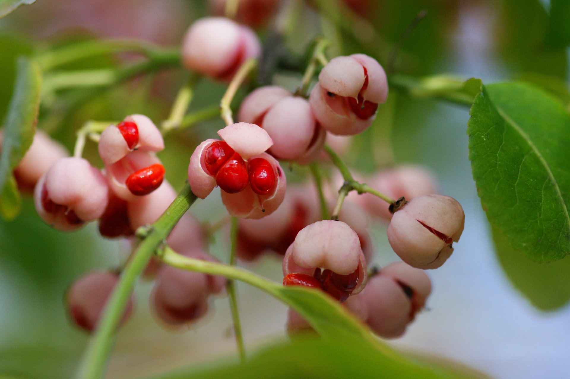Belles baies rouges. Arbustes aux baies rouges. Clôture en bois