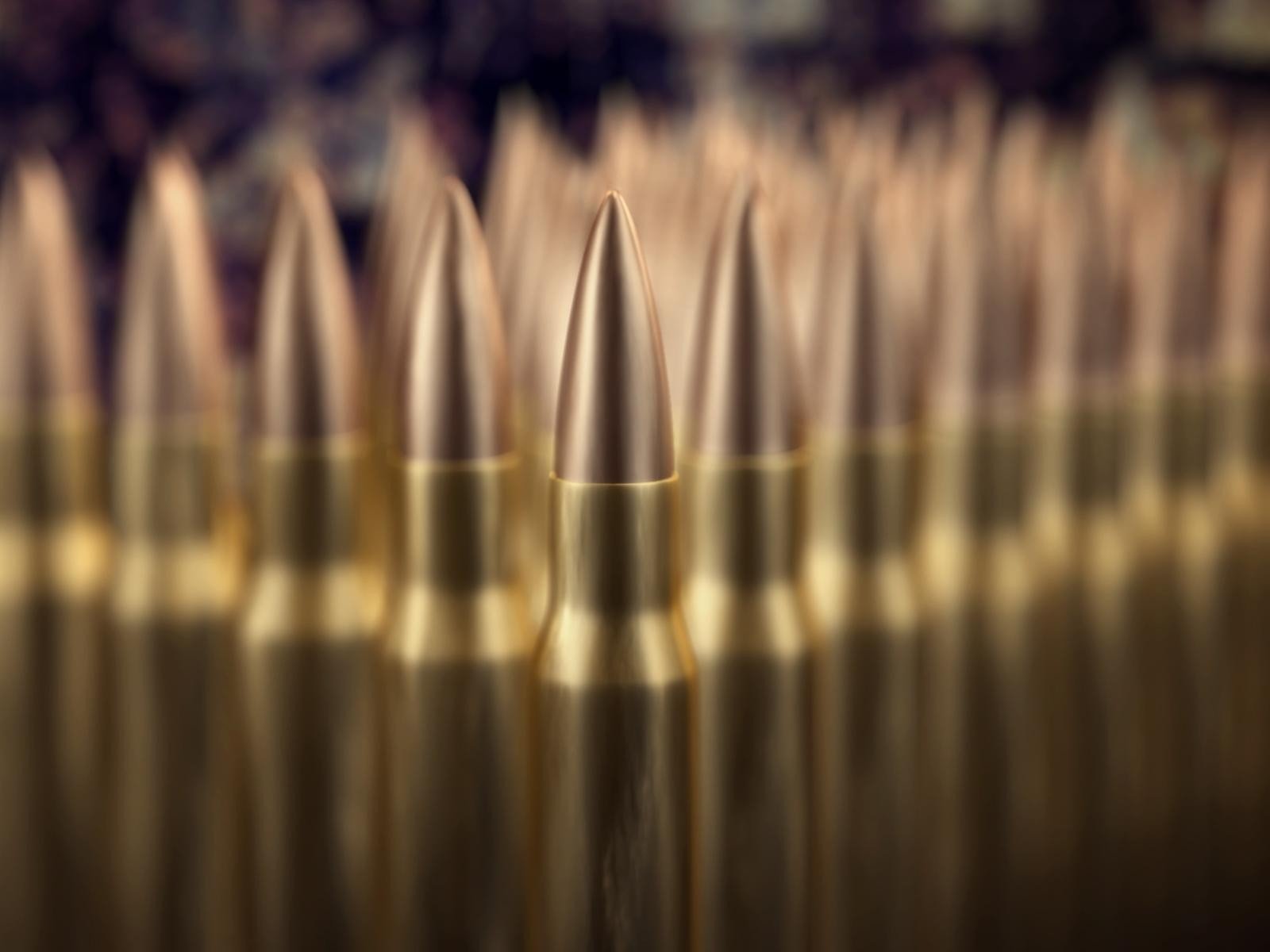 Une mitrailleuse noire repose sur un gilet pare-balles