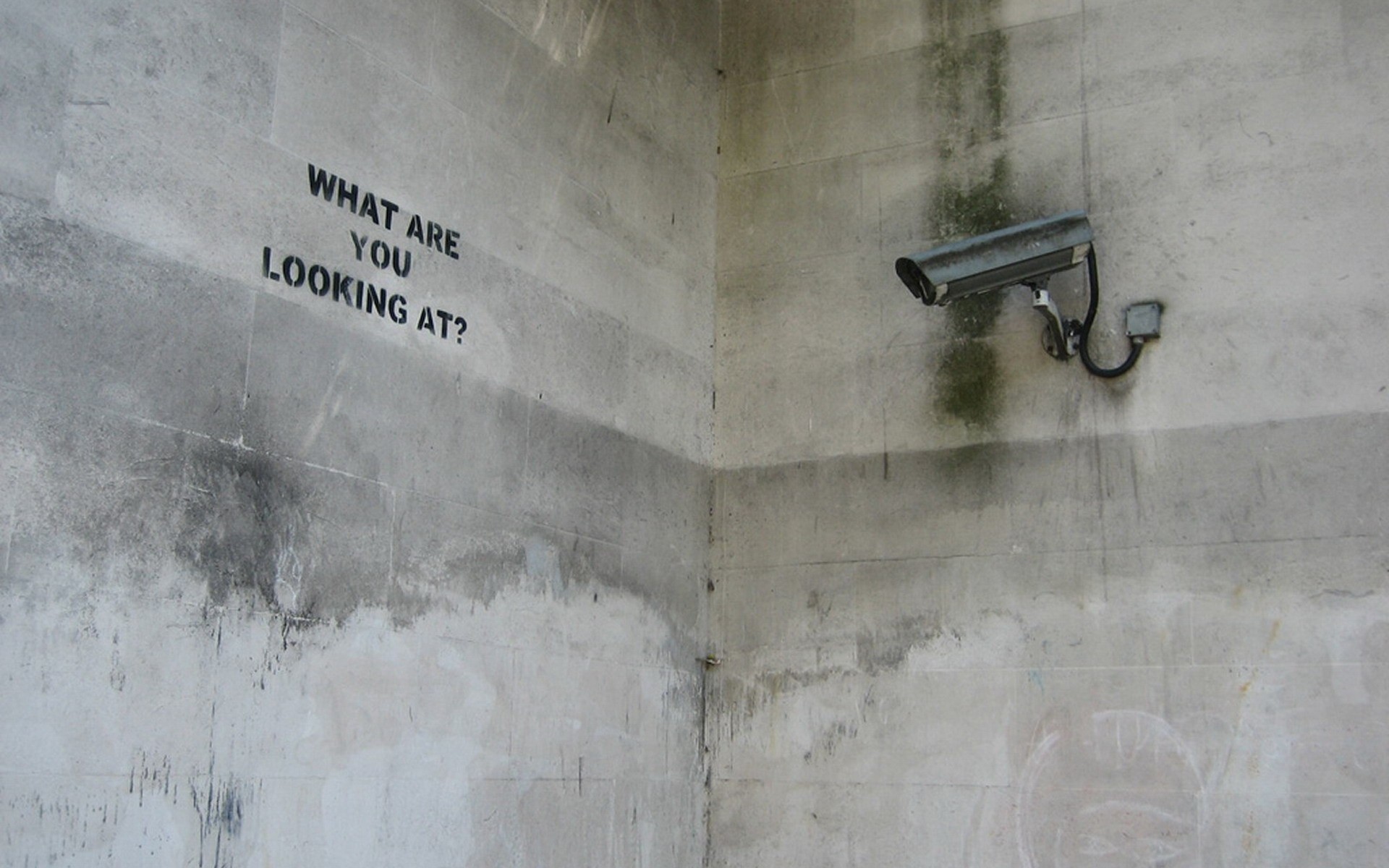 Mur gris avec caméra et inscription