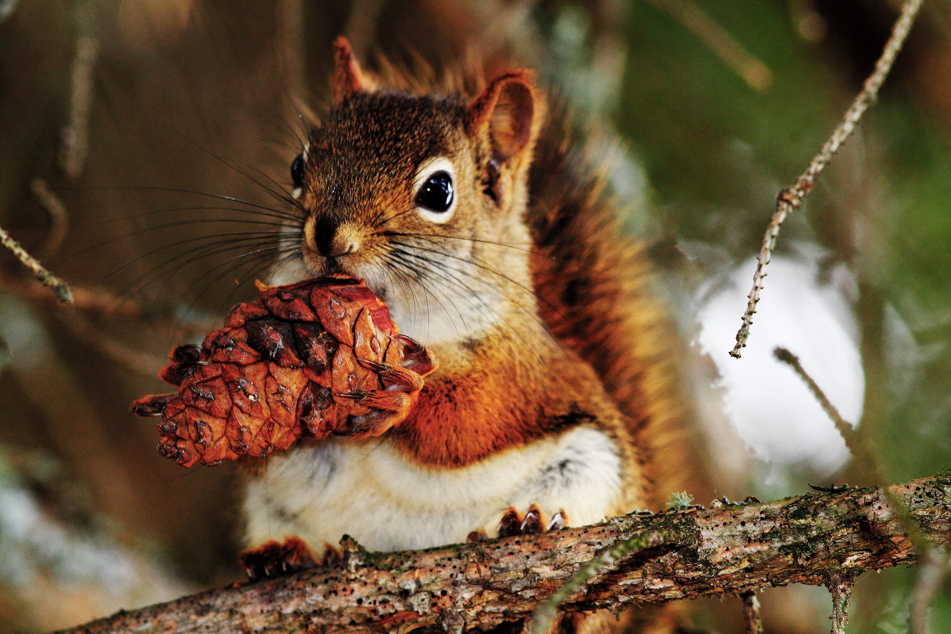 Écureuil avec des baies dans les pattes mange. animal de la forêt