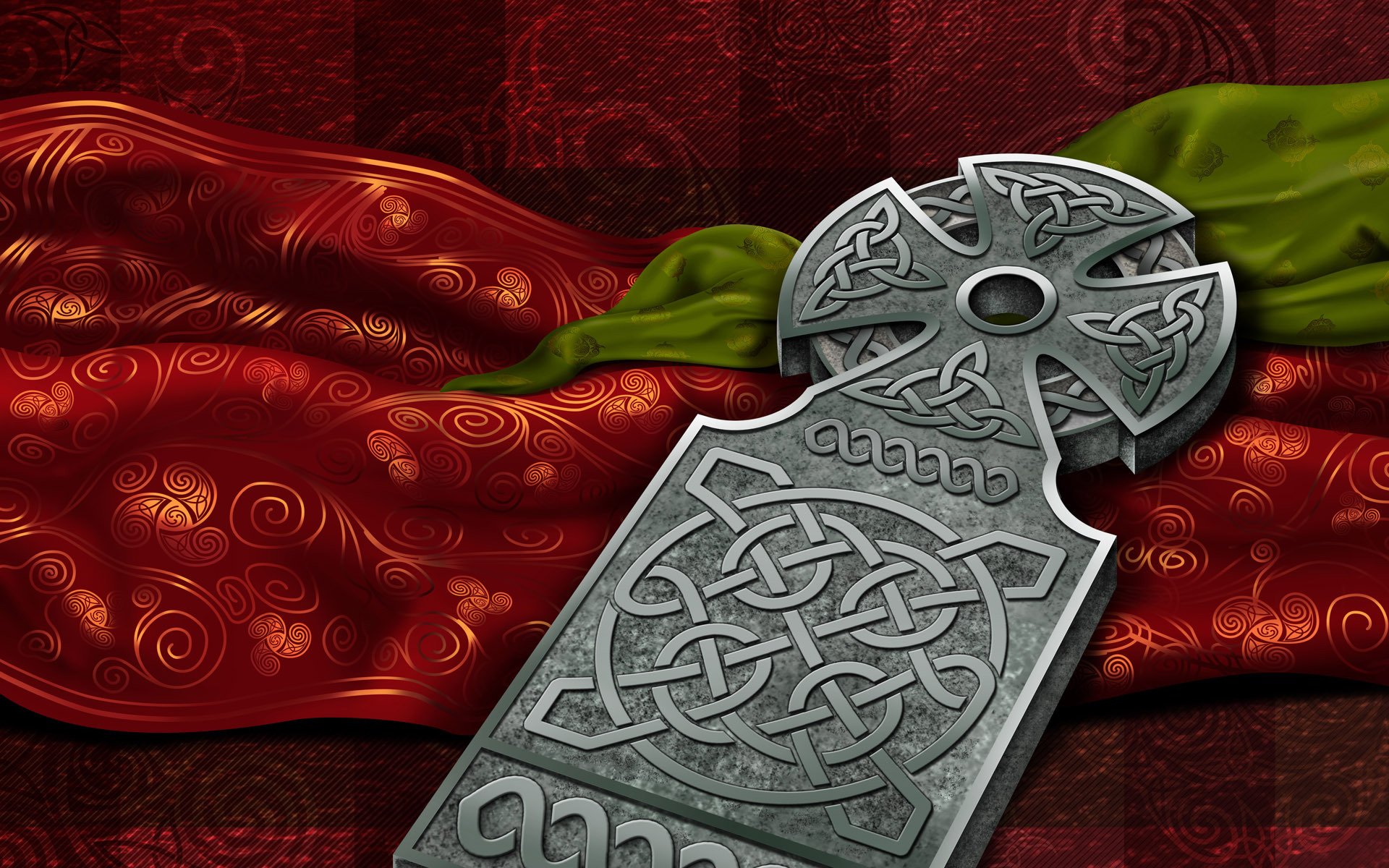 Croix noire et blanche faite comme si de granit sur un fond sombre et un peu en surbrillance