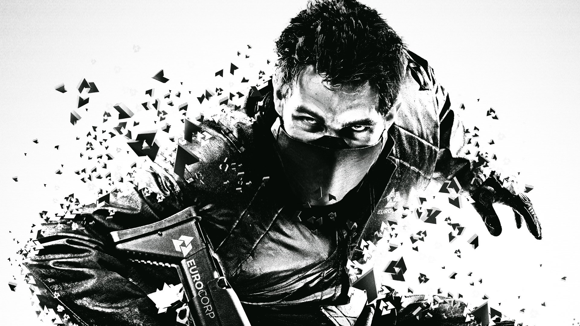 Homme masqué avec une photo en noir et blanc