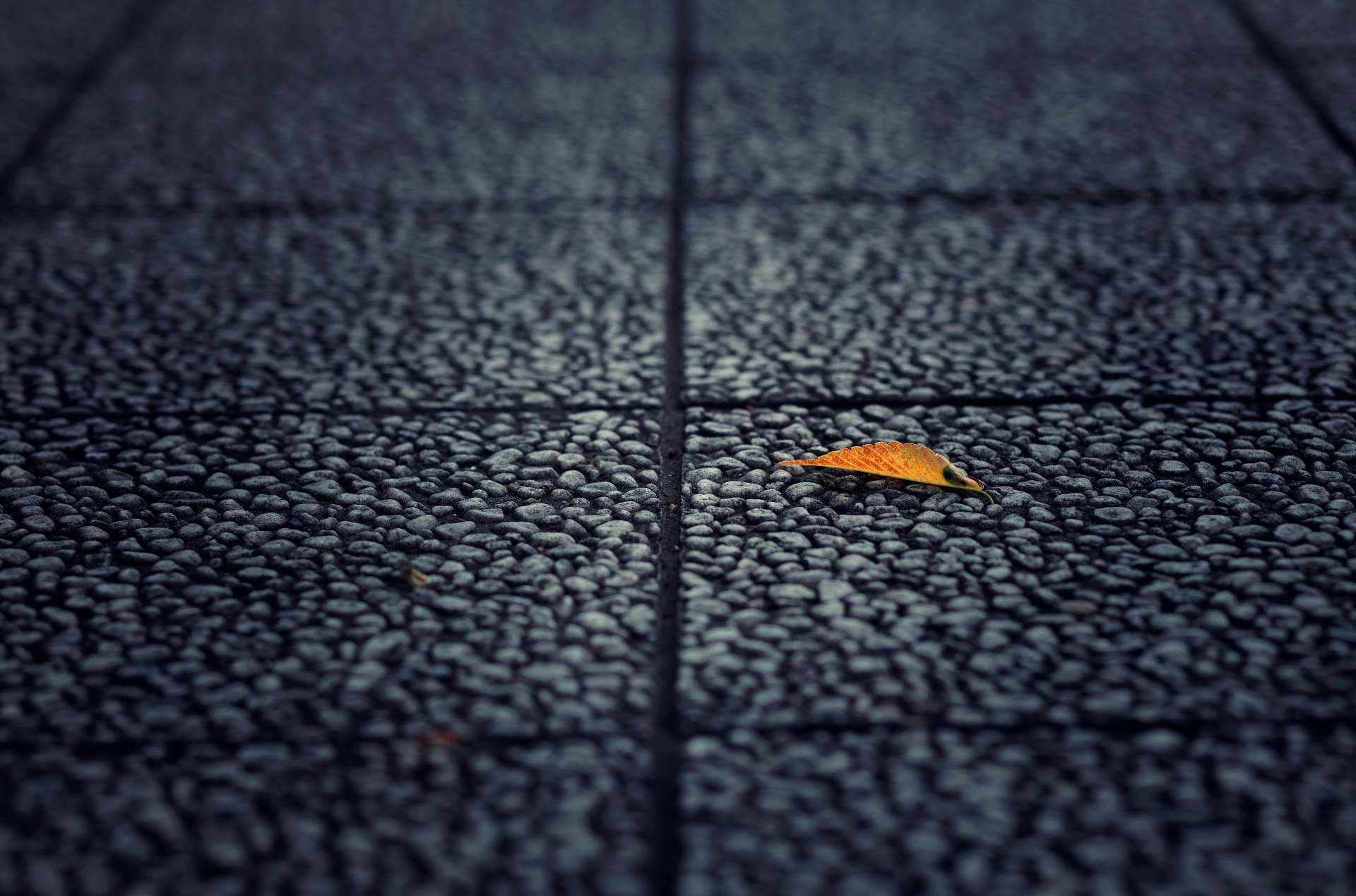 Feuille jaune d'automne avec des veines rouges dans l'herbe vert vif