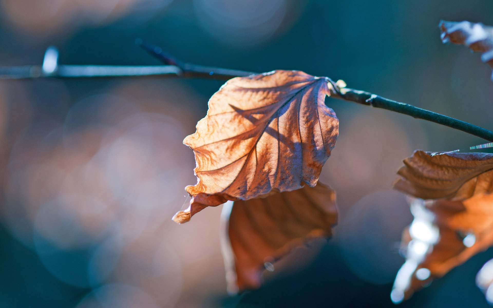 Coucher de soleil urbain et les lumières de la ville du soir, autour des feuilles magnifiquement éclairées