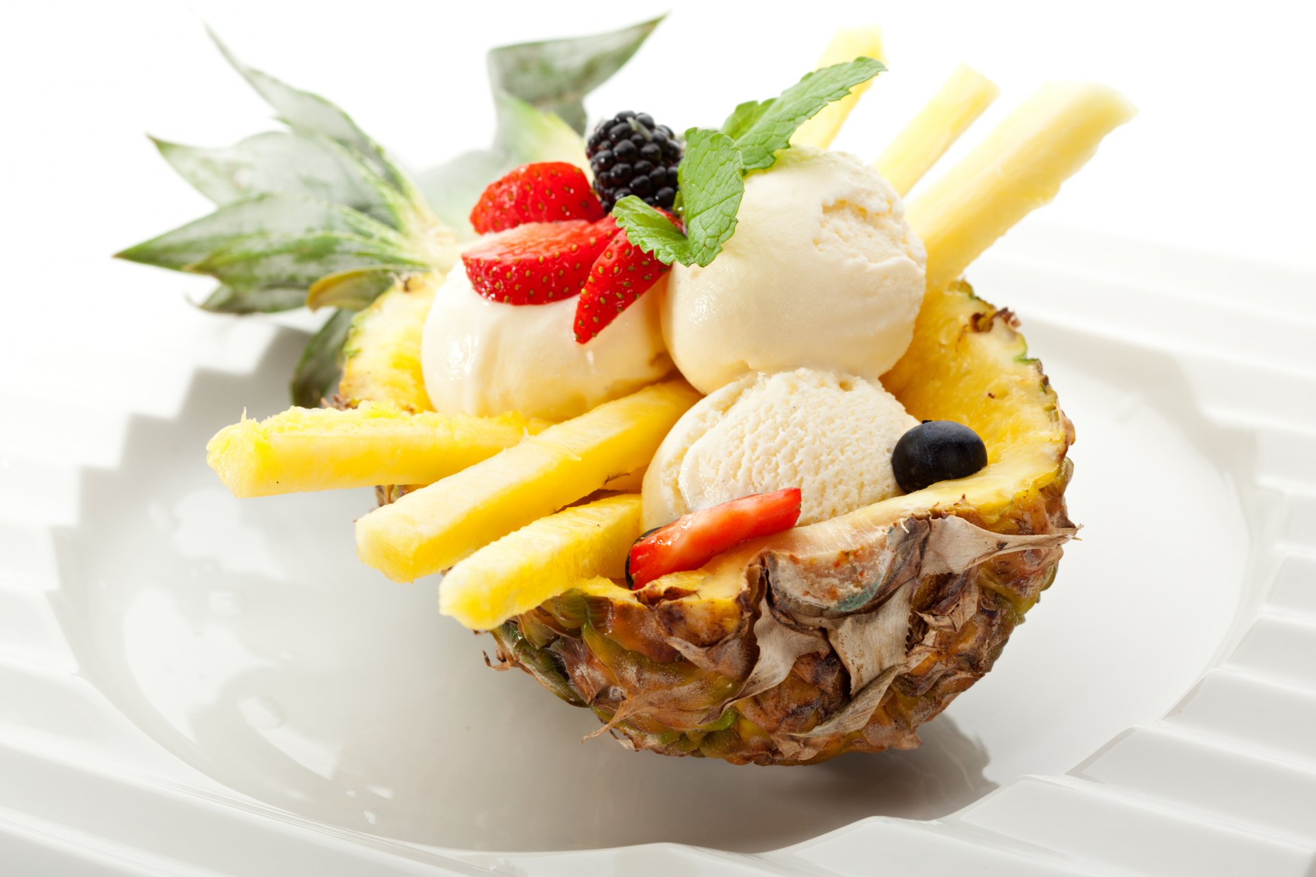 Mélange de fruits. Nature morte avec ananas, bananes, pommes, kiwis, raisins, oranges, poires et prunes
