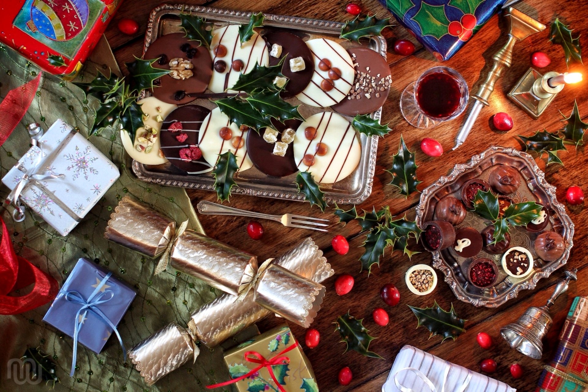 Belle boîte-cadeau de chocolat, de noix et d'autres goodies